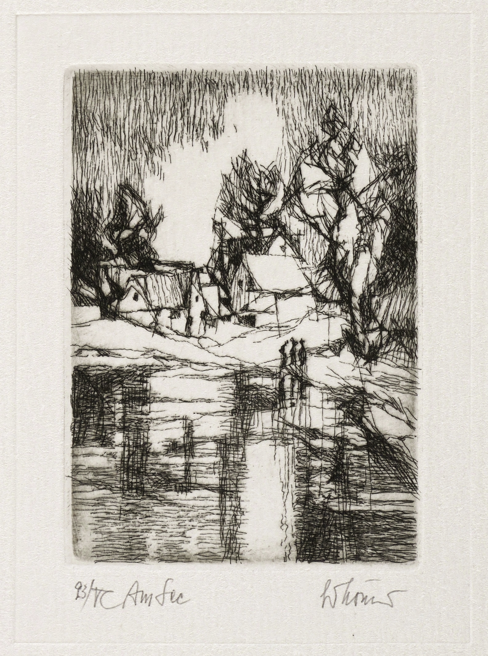 2000-2010. Radierung / Strichätzung, in Schwarz, auf hellchamois Velinkarton. – Originale Künstlergrafik, von Gottfried Körner. – 7,4 x 5,2 cm (Darstellung / Druckbild), 9,3 x 6,8 cm (Platte), 15 x 11 cm (Blatt).