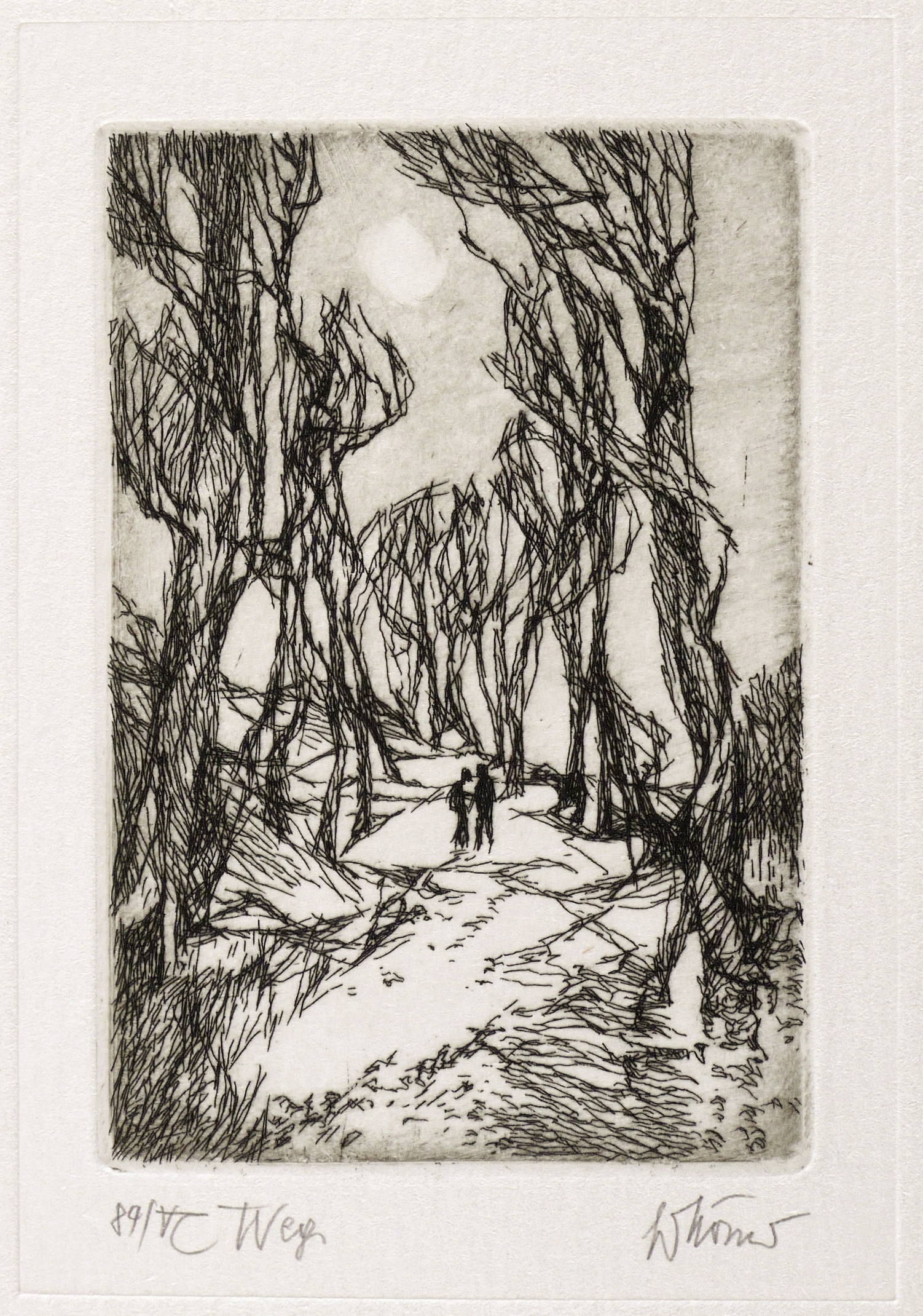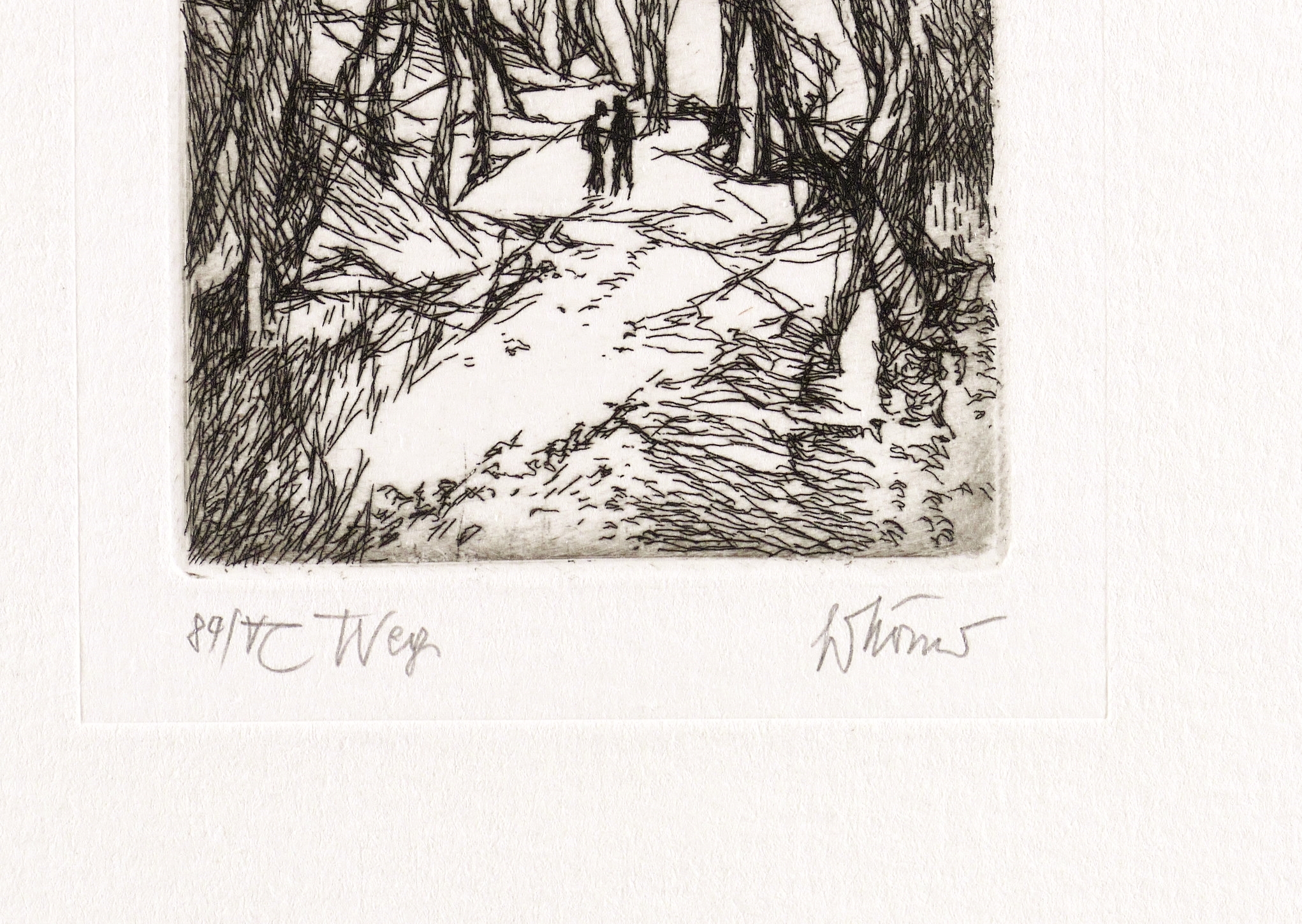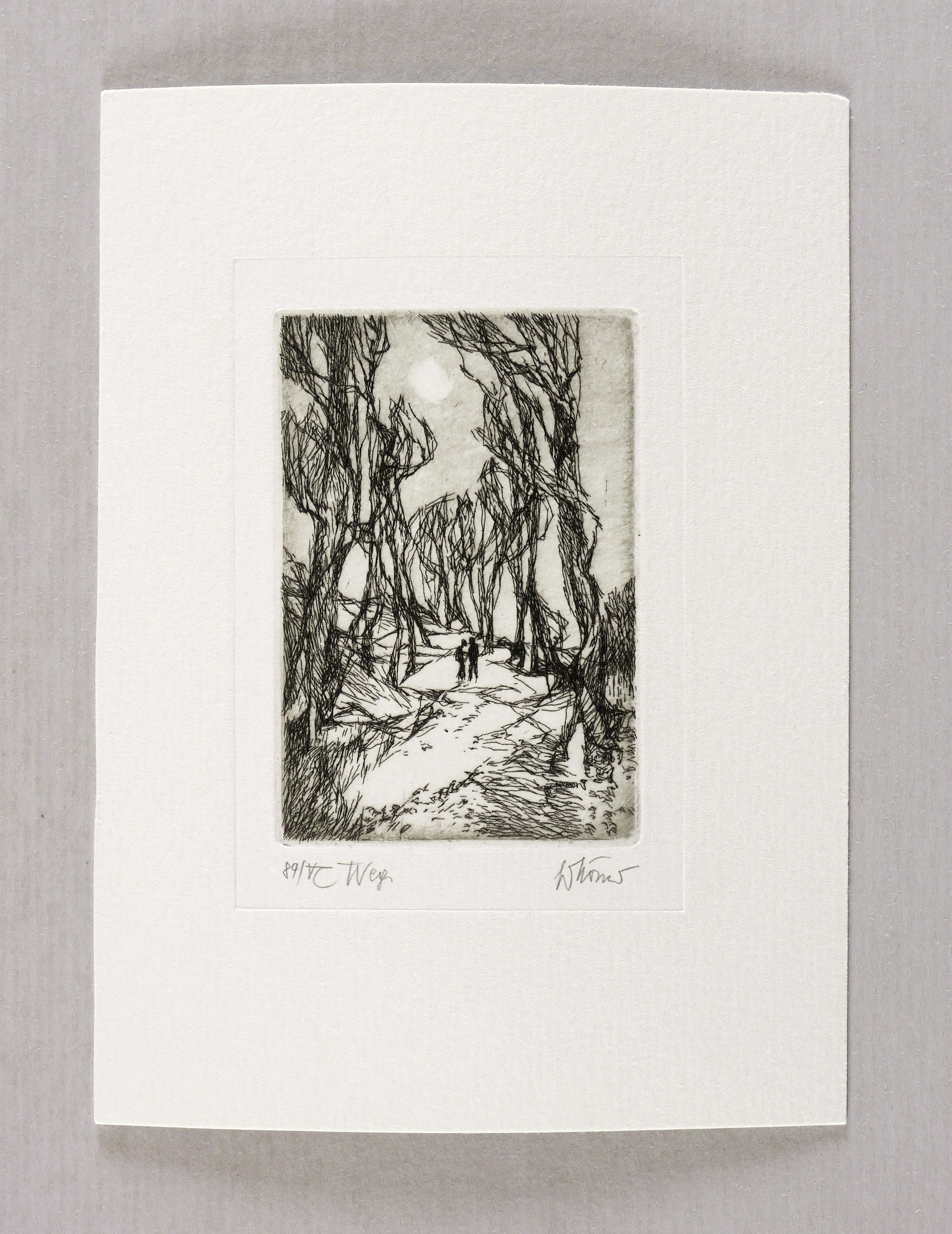 2008/2009. Radierung / Strichätzung, in Schwarz, mit Plattenton, auf hellchamois Velinkarton. – Originale Künstlergrafik, von Gottfried Körner. – 7,3 x 5,0 cm (Darstellung / Druckbild), 9,0 x 6,3 cm (Platte), 15 x 11 cm (Blatt).