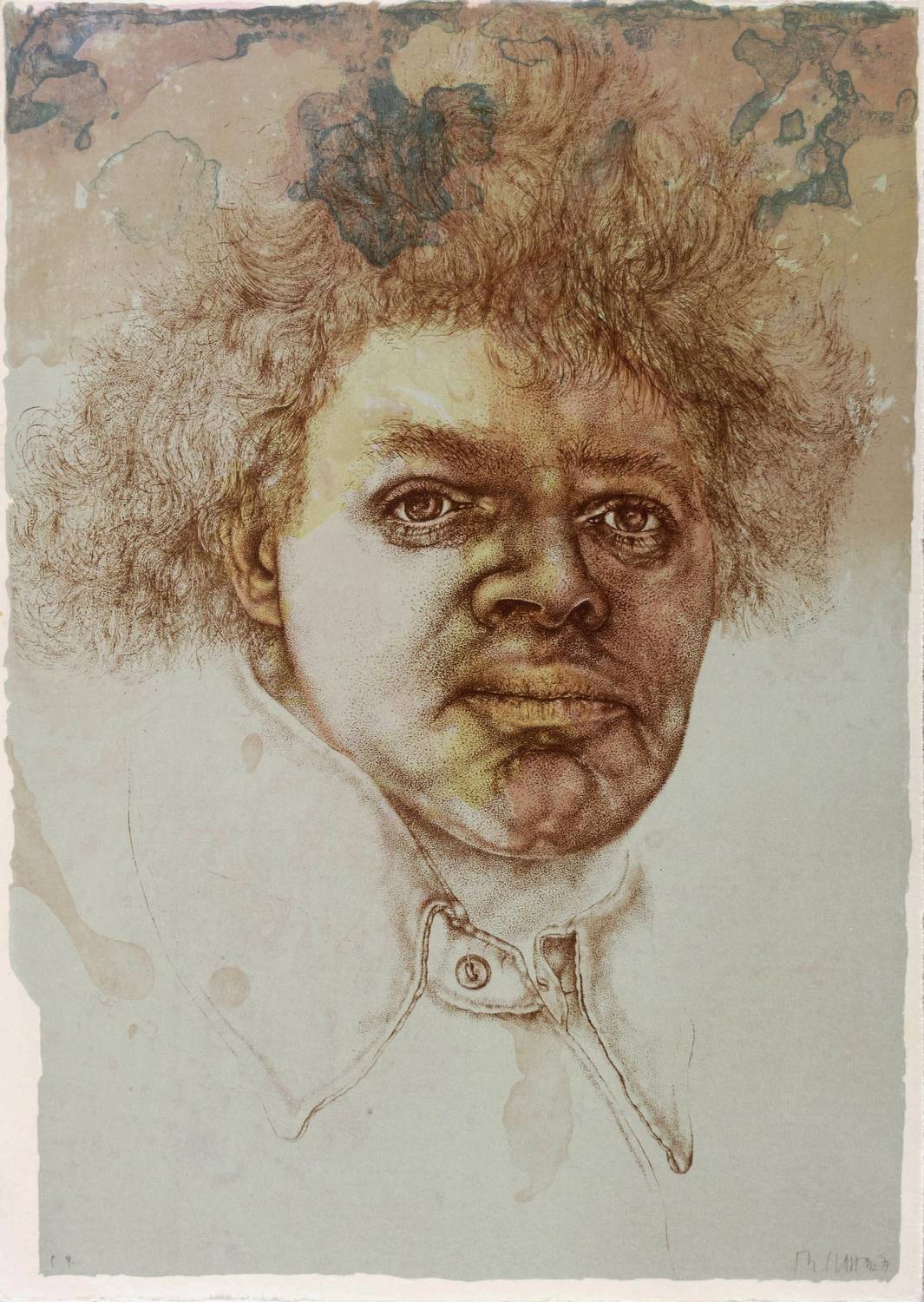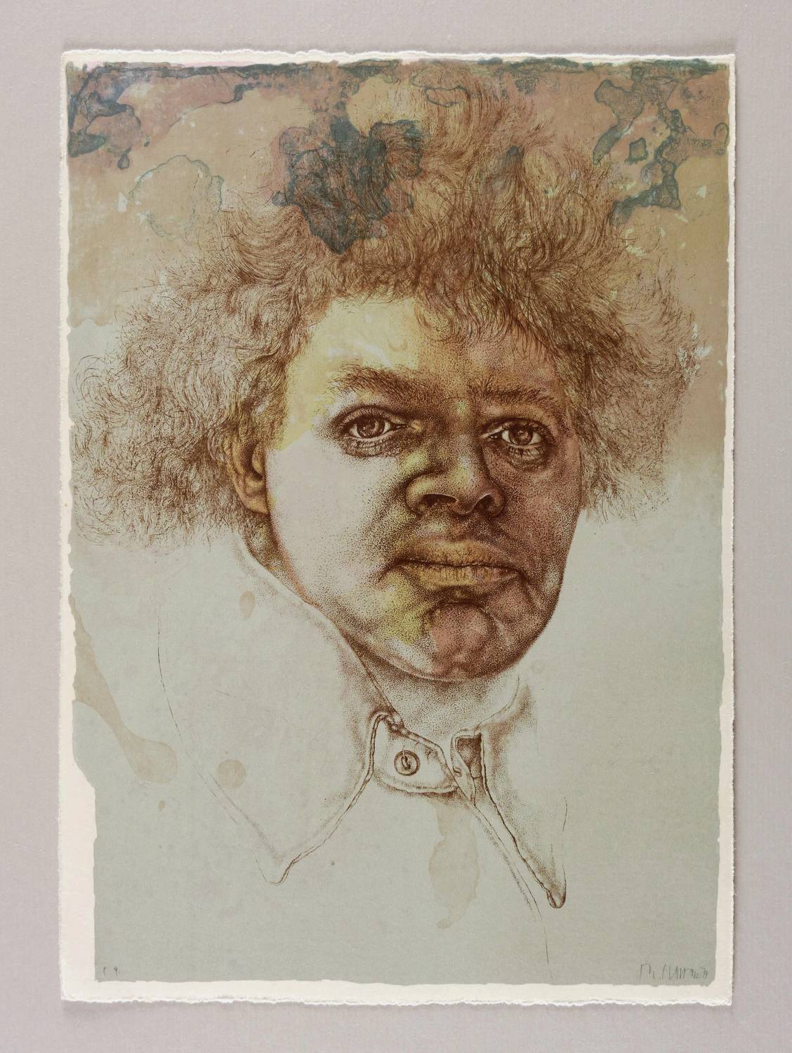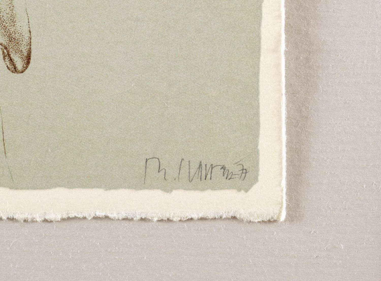 1977. Farblithografie / Kreide- & Pinsellithografie, in 3 Farben, auf chamois Velinkarton. – Von Reiner Schwarz. – Künstlerexemplar (e.a.). – 29,6 x 21,0 cm (Darstellung / Blatt).