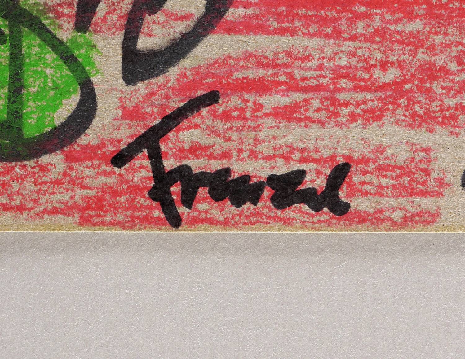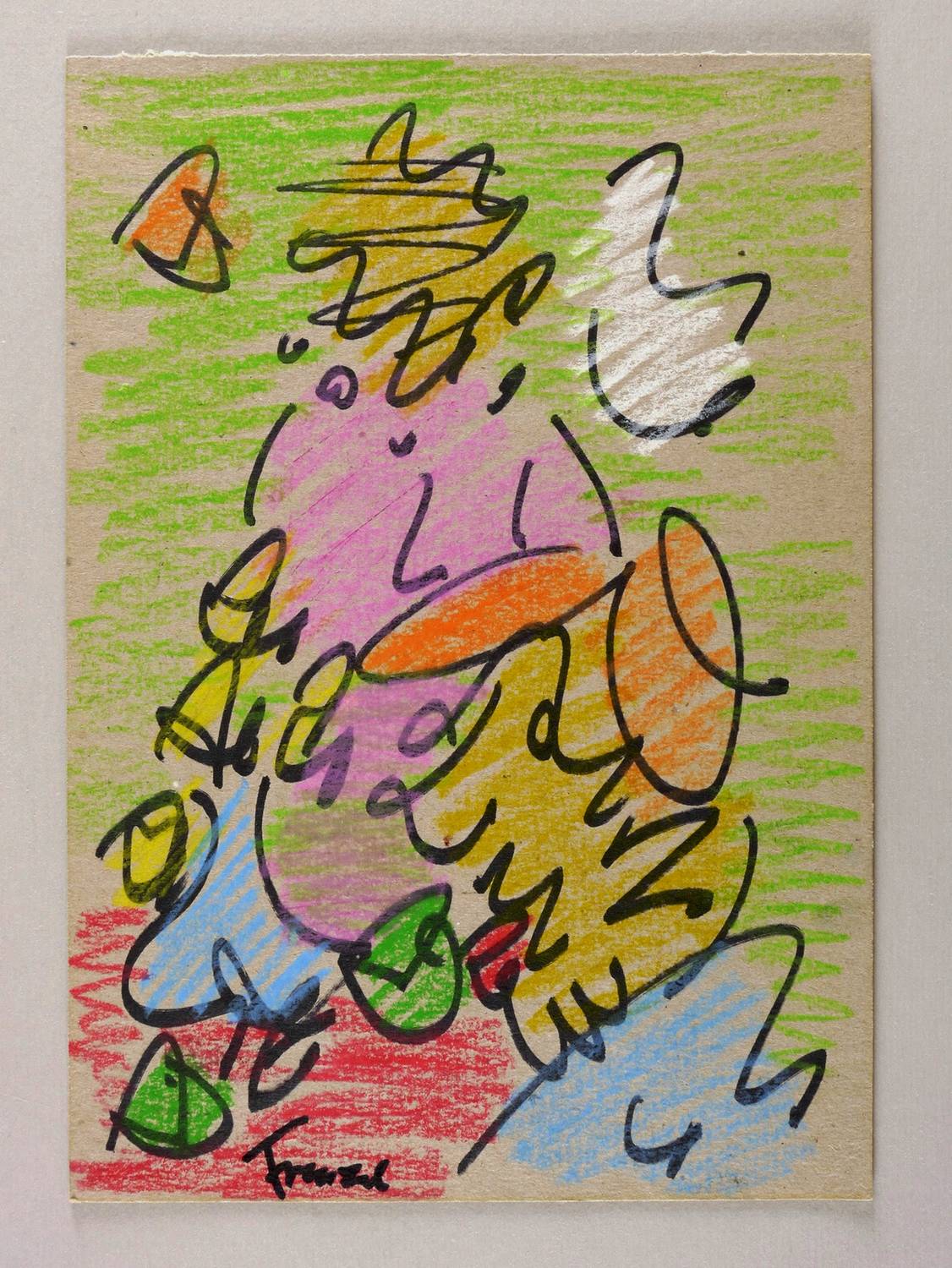 Um 1980. Mischtechnik / Faserstift & Farbkreide, auf hellgrauem Karton. – Originale Künstlergrafik, von Roland Frenzel. – Unikat. – 30,0 x 21,0 cm (Darstellung / Blatt).