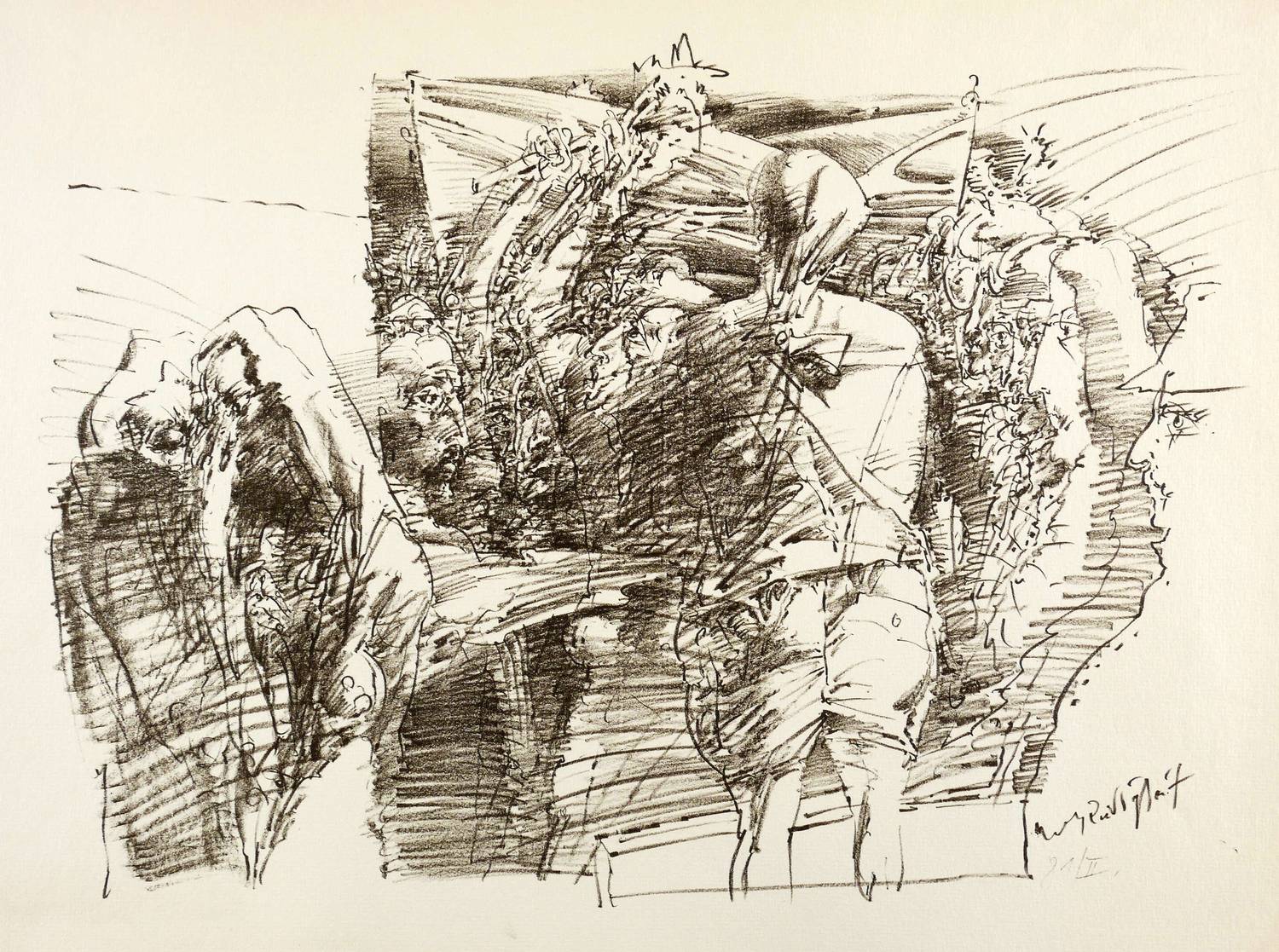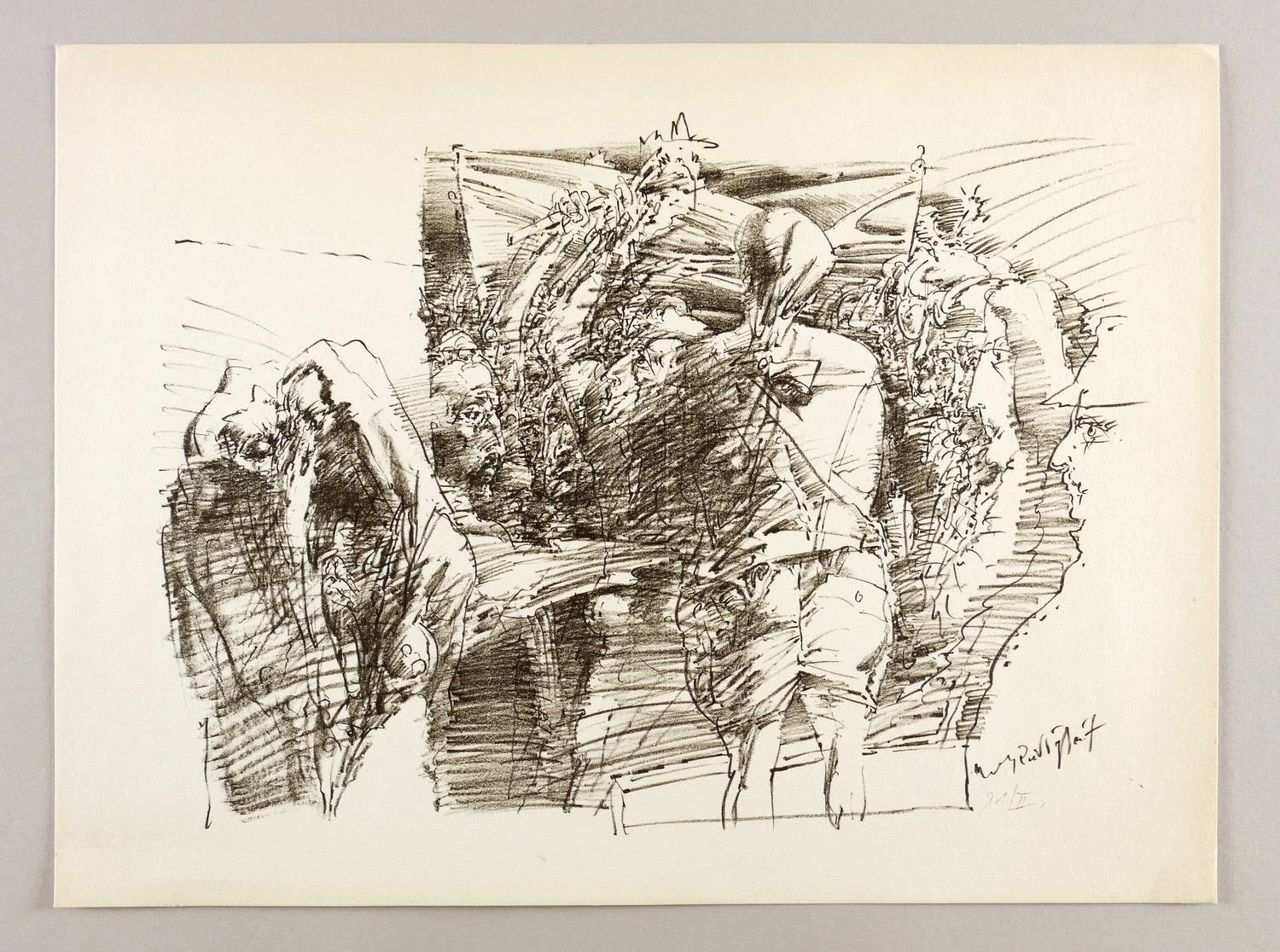 1981. Lithografie / Kreidelithografie, in Schwarz, auf hartem gelblichem Maschinenbütten. – Originale Künstlergrafik, von Frank Ruddigkeit. – 32,0 x 45,5 cm (Darstellung / Druckbild), 38 x 52 cm (Blatt).