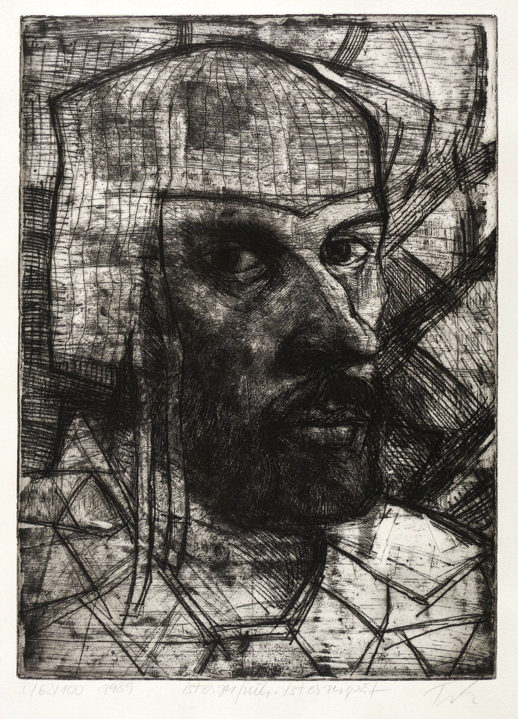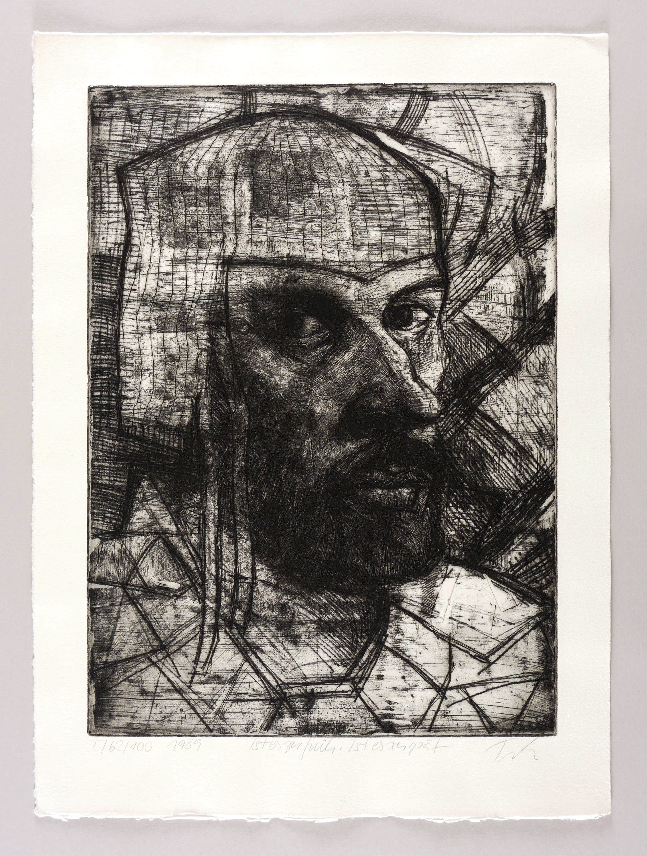 1989. Radierung / Kaltnadel, in Schwarz, auf schwerem hellem Hahnemühle-Bütten. – Von Hans Joachim Triebsch. – Auflage Exemplar Nr. 62/100. – 44,6 x 32,2 cm (Darstellung / Platte), 54 x 40 cm (Blatt).