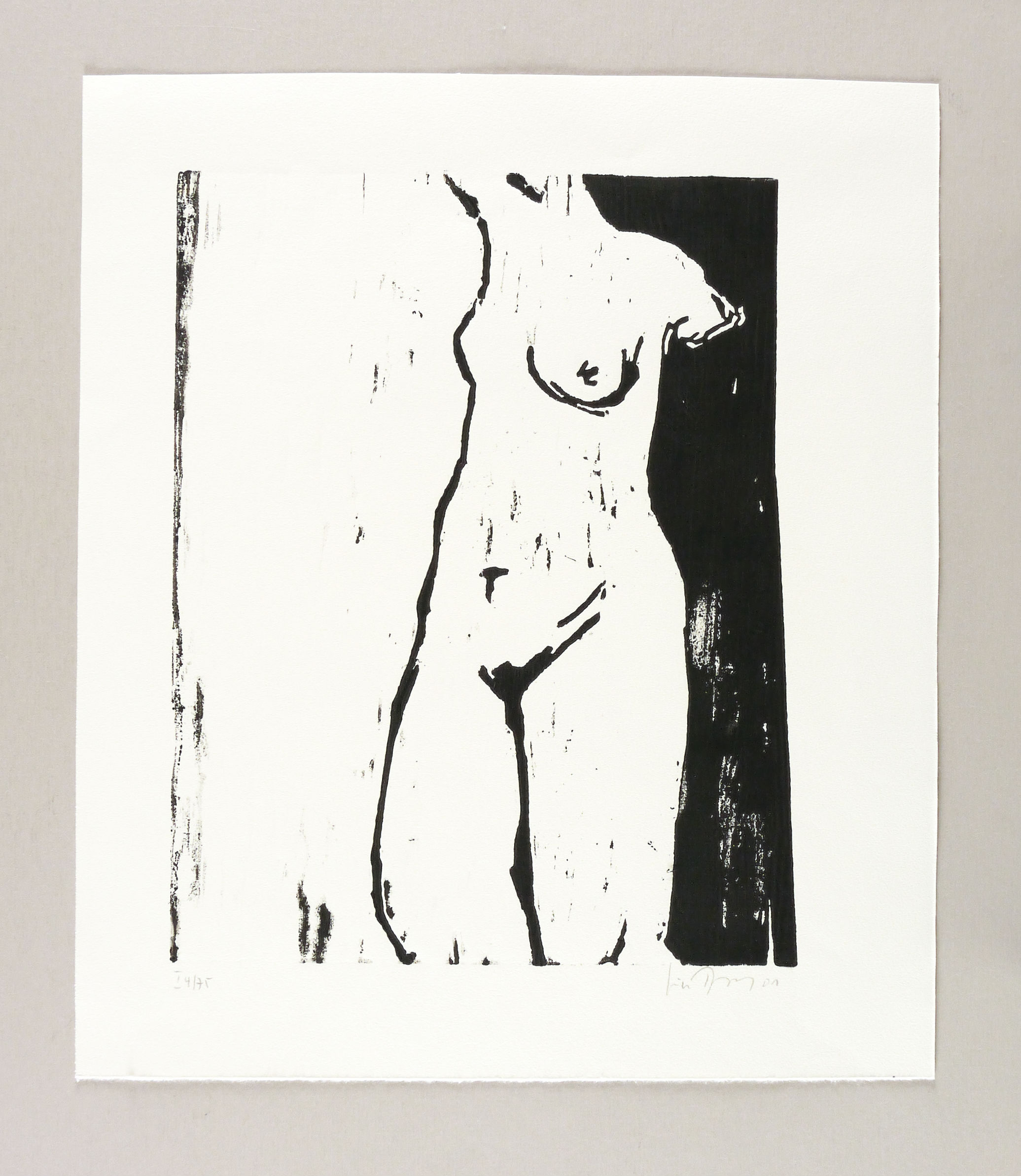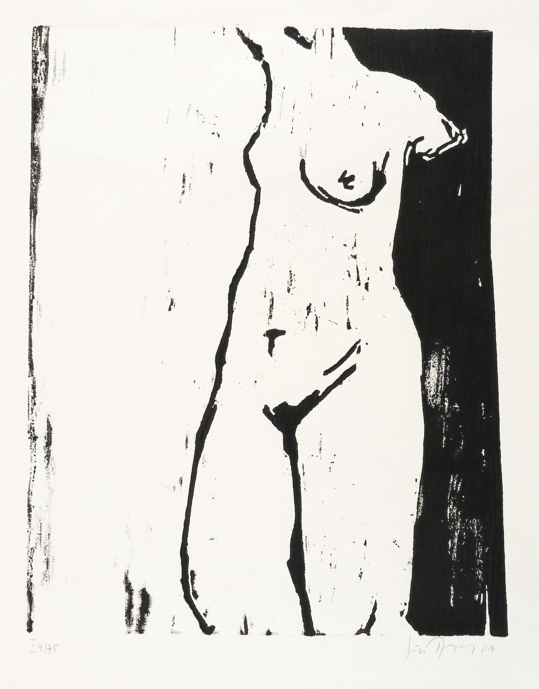 2001. Holzschnitt, in Schwarz, auf leichtem hellchamois Velin. – Originale Künstlergrafik, von Luise Dewerny. – Auflage Exemplar Nr. 4/75. – 32,2 x 25,7 cm (Darstellung / Druckstock), 41 x 35 cm (Blatt).