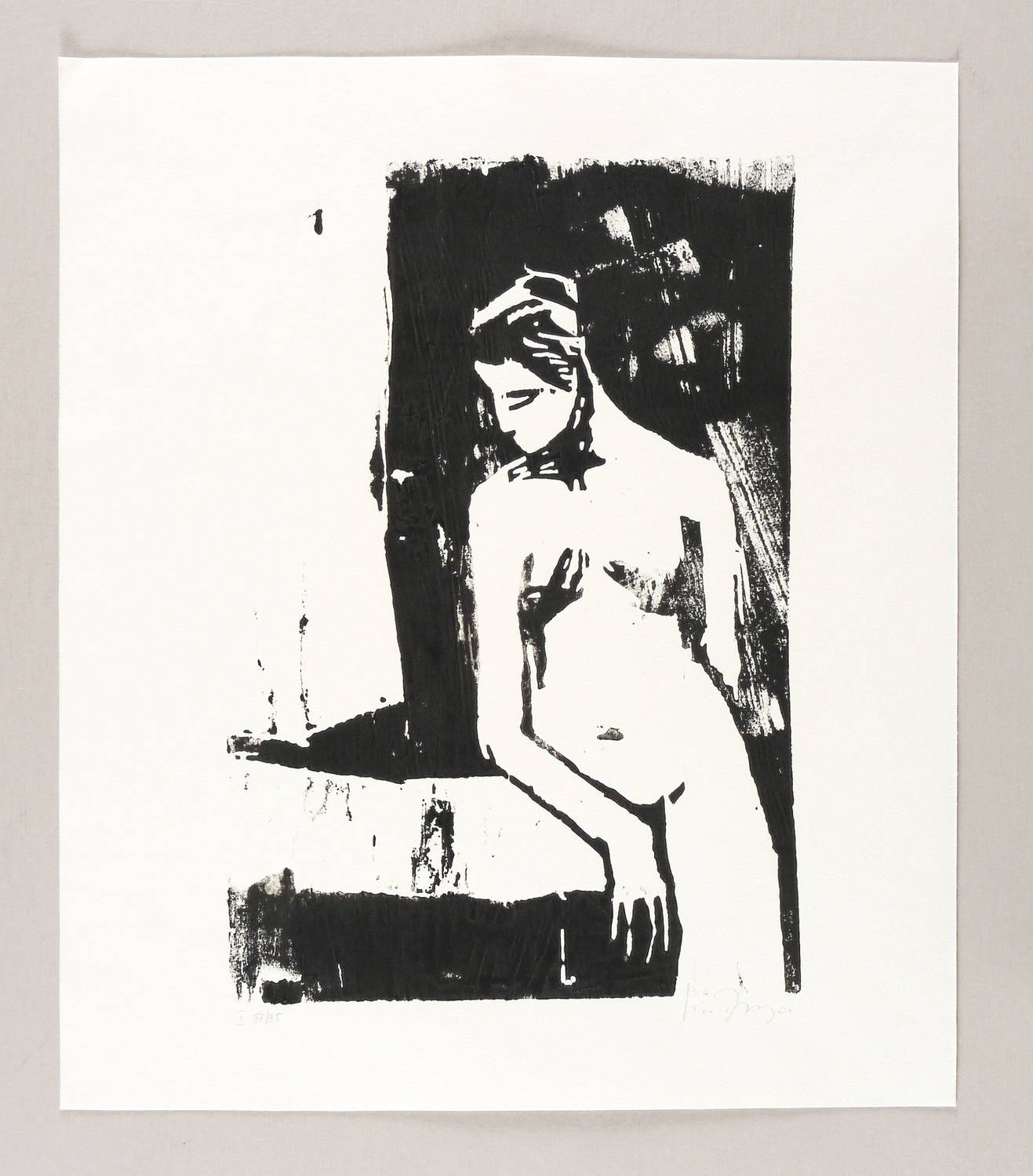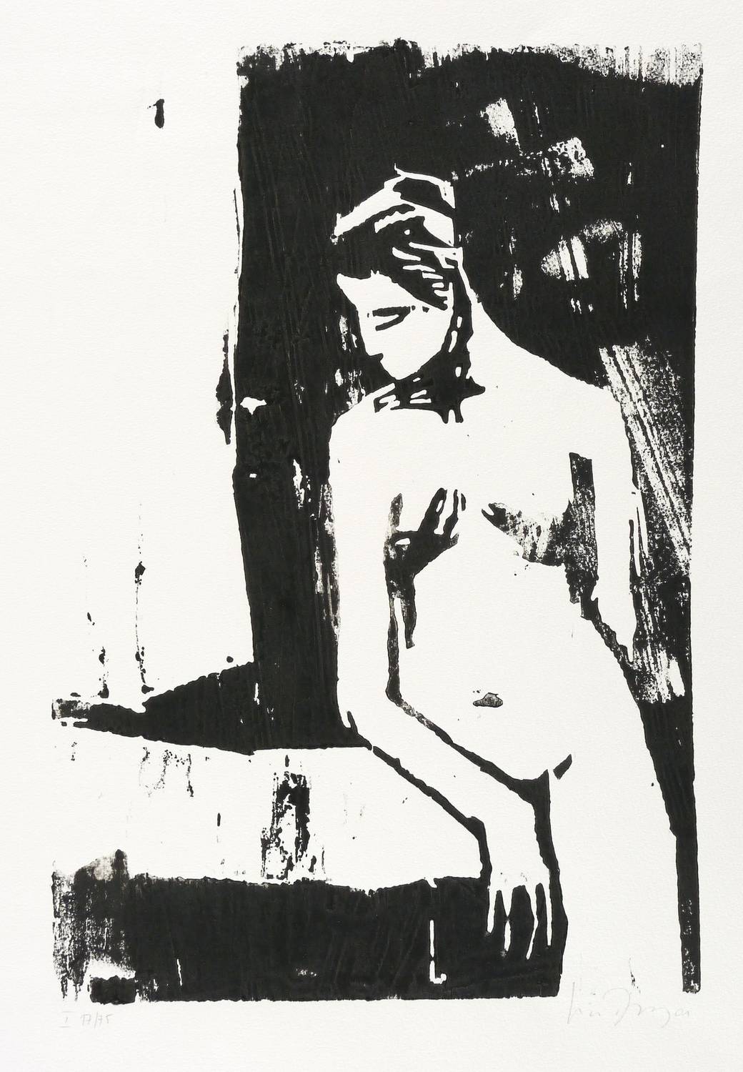 2001. Holzschnitt, in Schwarz, auf rauem hellchamois Velin. – Originale Künstlergrafik, von Luise Dewerny. – Auflage Exemplar Nr. 17/75. – 32,8 x 22,1 cm (Darstellung / Druckstock), 41 x 35 cm (Blatt).