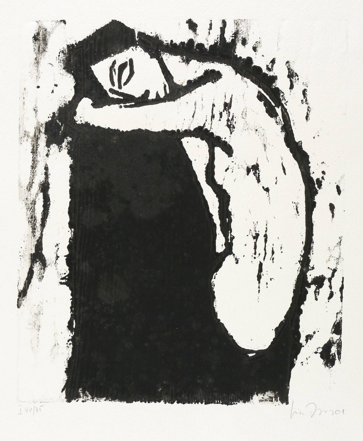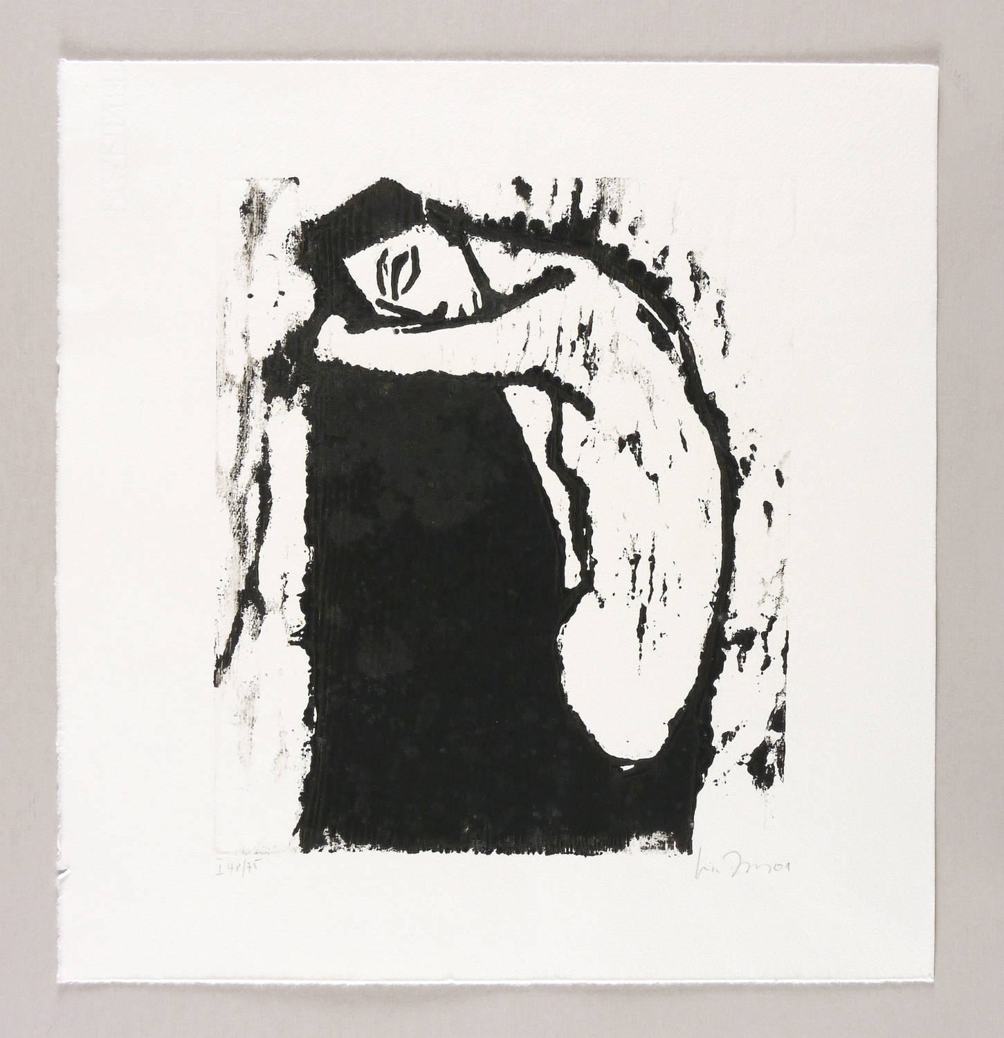 2001. Holzschnitt, in Schwarz, auf rauem hellchamois Velin. – Originale Künstlergrafik, von Luise Dewerny. – Auflage Exemplar Nr. 48/75. – 26,9 x 22,8 cm (Darstellung / Druckstock), 37 x 35 cm (Blatt).