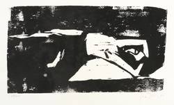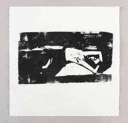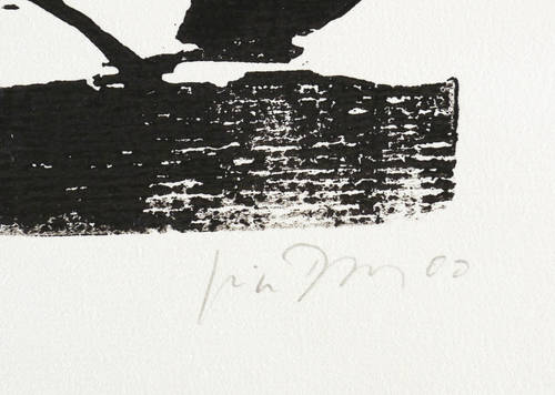 2000. Holzschnitt, in Schwarz, auf rauem hellchamois Velin. – Originale Künstlergrafik, von Luise Dewerny. – Auflage Exemplar Nr. 59/75. – 16,6 x 30,1 cm (Darstellung / Druckstock), 36 x 35 cm (Blatt).