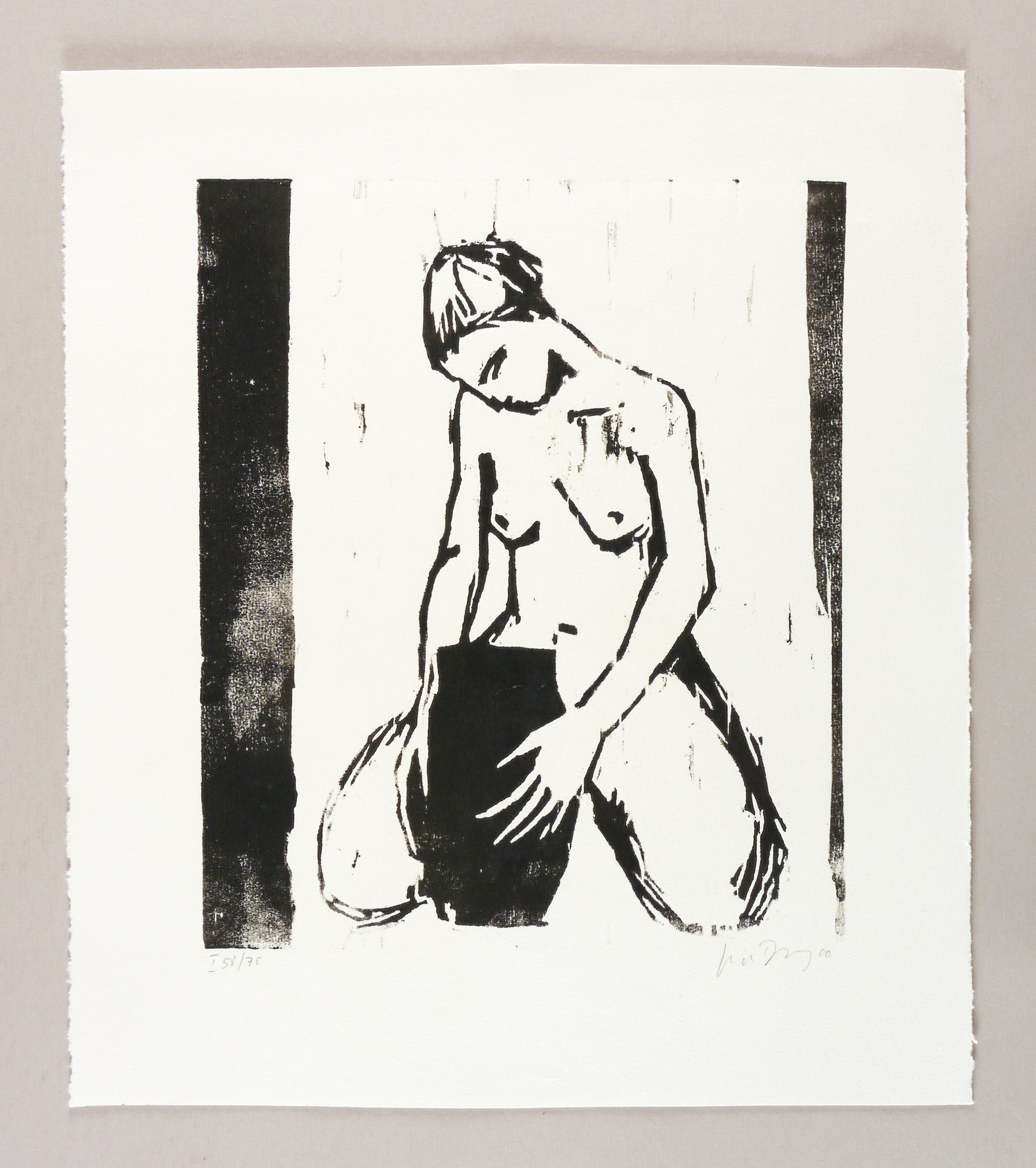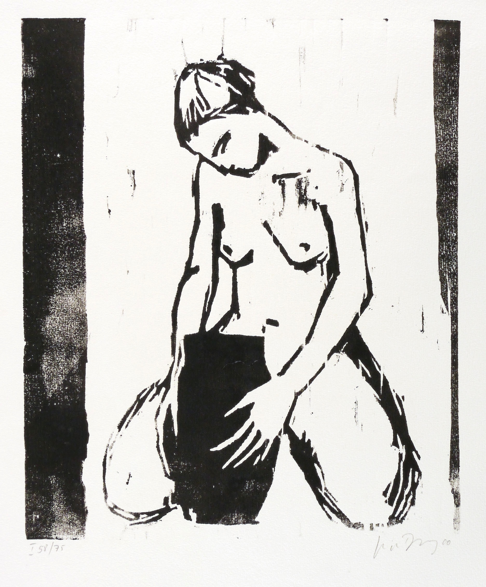 2000. Holzschnitt, in Schwarz, auf rauem hellchamois Velin. – Originale Künstlergrafik, von Luise Dewerny. – Auflage Exemplar Nr. 58/75. – 29,8 x 24,9 cm (Darstellung / Druckstock), 40 x 35 cm (Blatt).