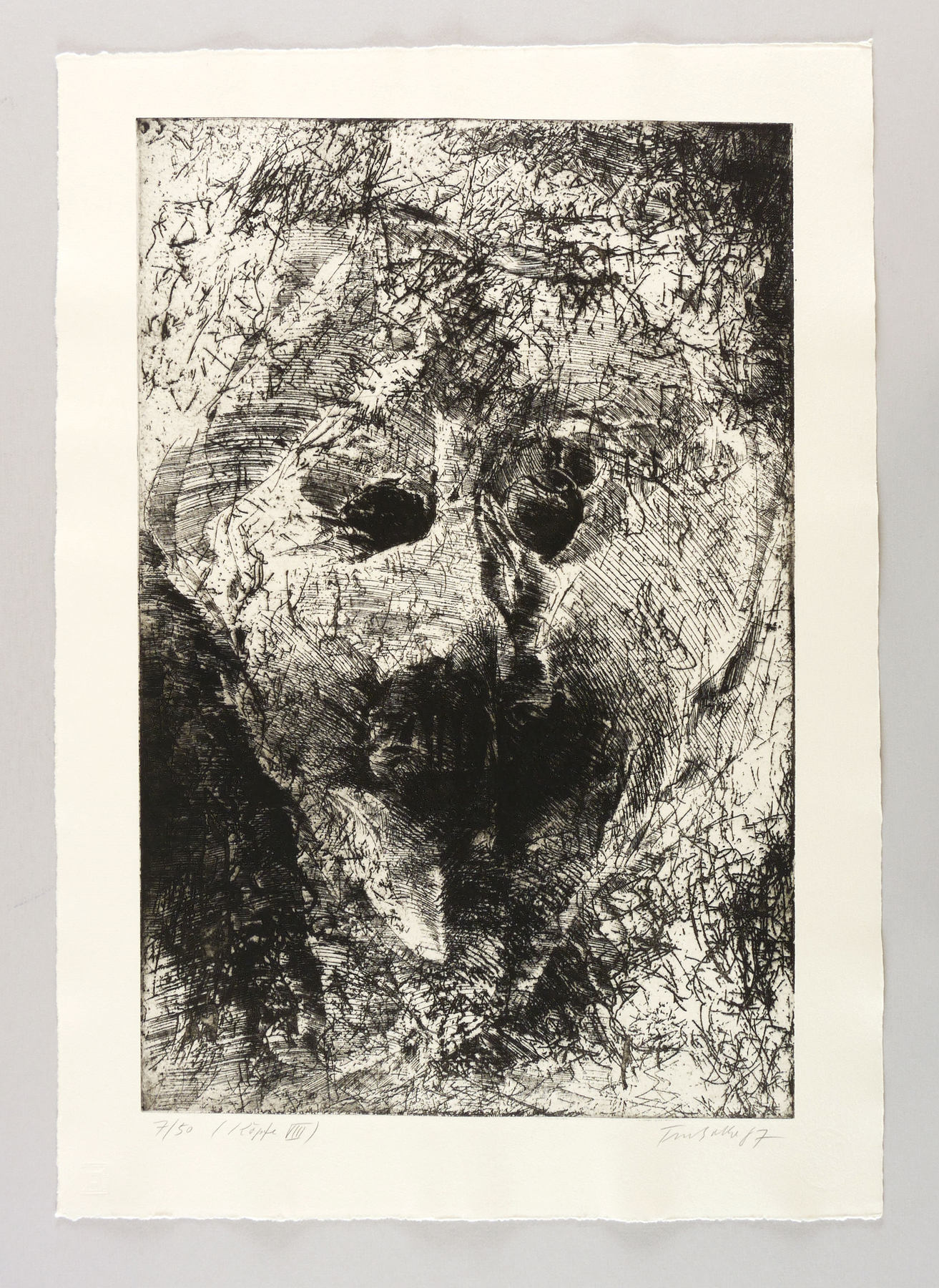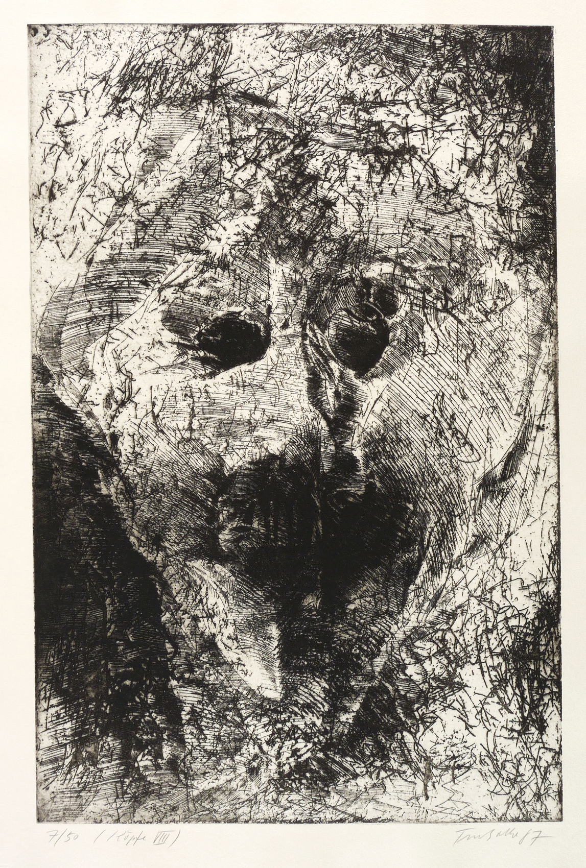1987. Radierung / Reservage, geschabt, in Schwarz, auf schwerem Hahnemühle. – Originale Künstlergrafik, von Dieter Tucholke. – Auflage Exemplar Nr. 7/50. – 49,5 x 32,7 cm (Darstellung / Platte), 59 x 42 cm (Blatt).
