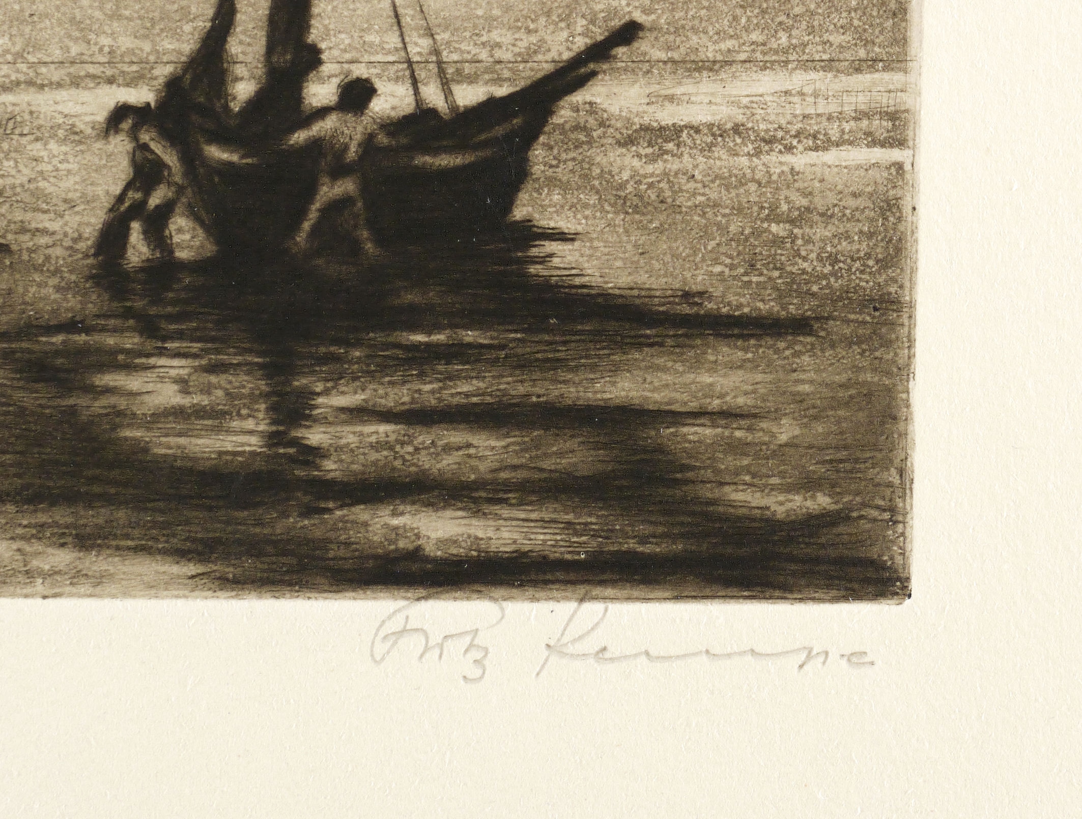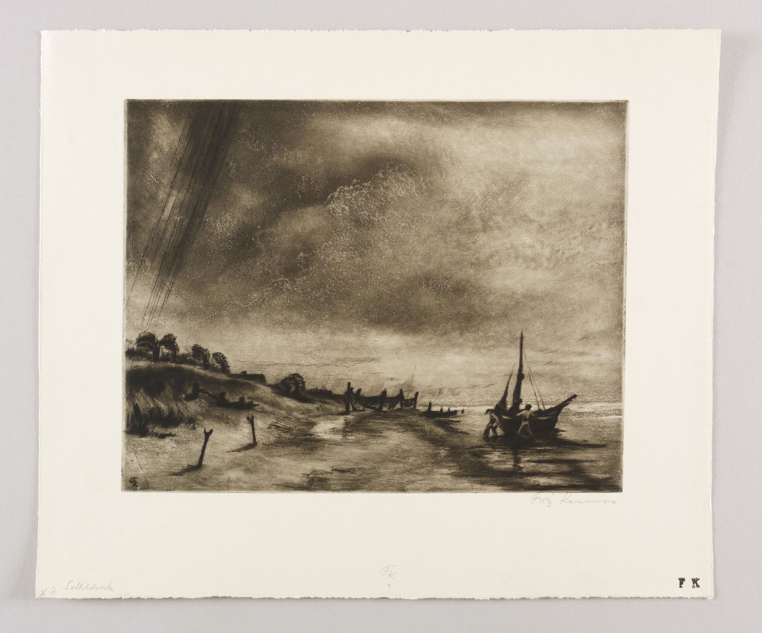 Rechts unten in Bleistift signiert: ″Fritz Kempe″. Am Blattrand unten bezeichnet und monogrammiert: ″x3 Selbstdruck / FK″. In der rechten unteren Blattecke Monogramm-Stempel des Künstlers. In der Platte links unten nochmals Monogramm. – Tadellos erhalten. Sehr guter Zustand.