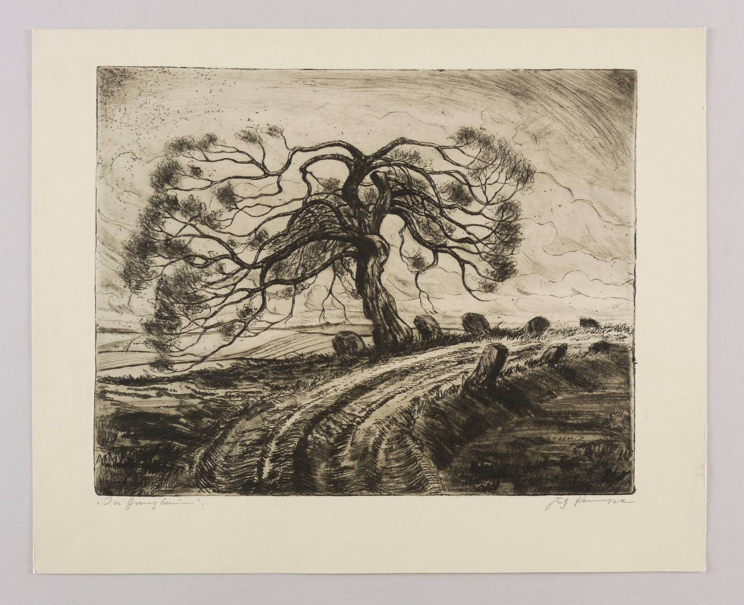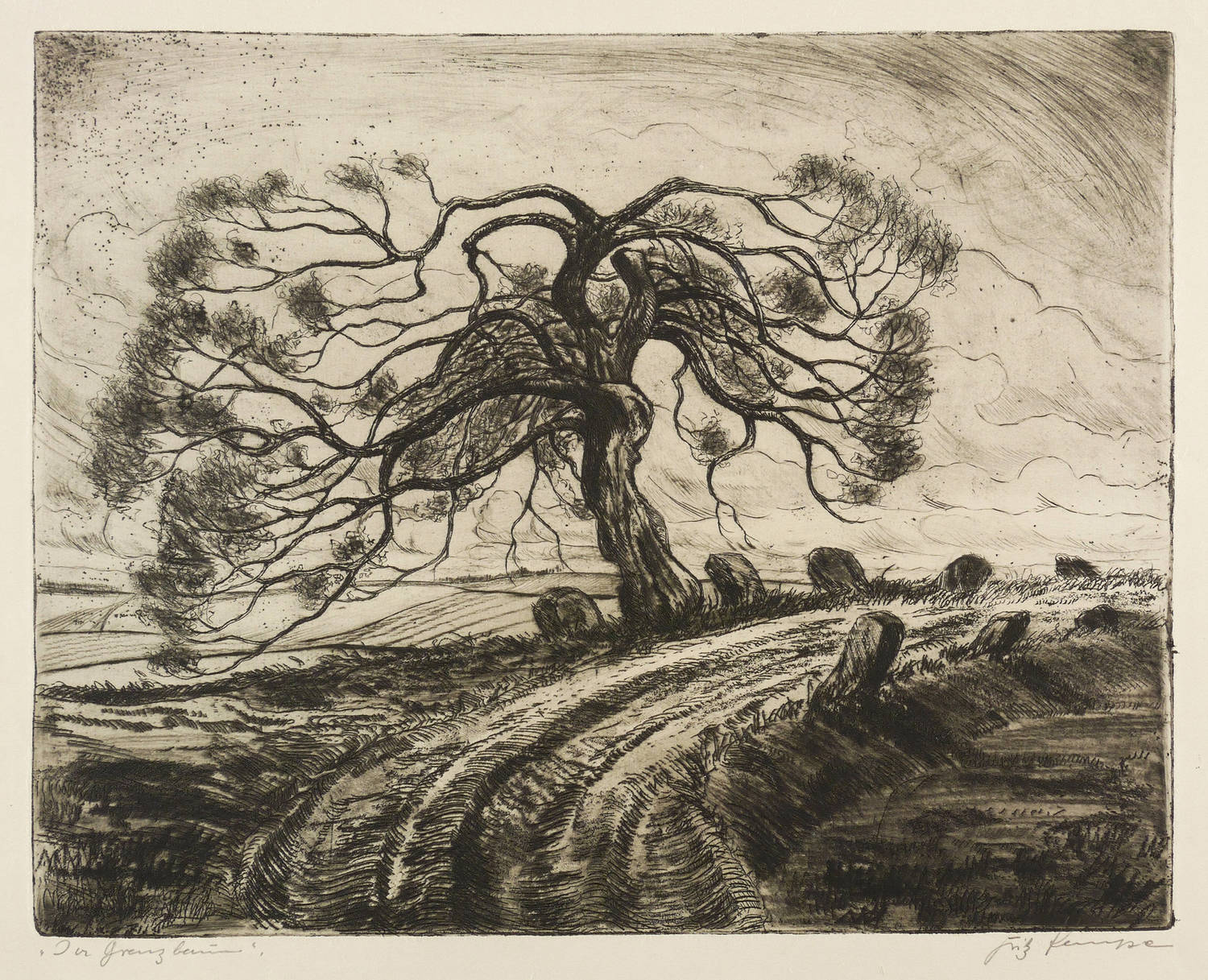 Rechts unten in Bleistift signiert: ″Fritz Kempe″. Links bezeichnet: ″Der Grenzbaum″. – Aus dem Leipziger Frühwerk des Künstlers. - Selten. – Tadellos. Sehr guter Zustand.