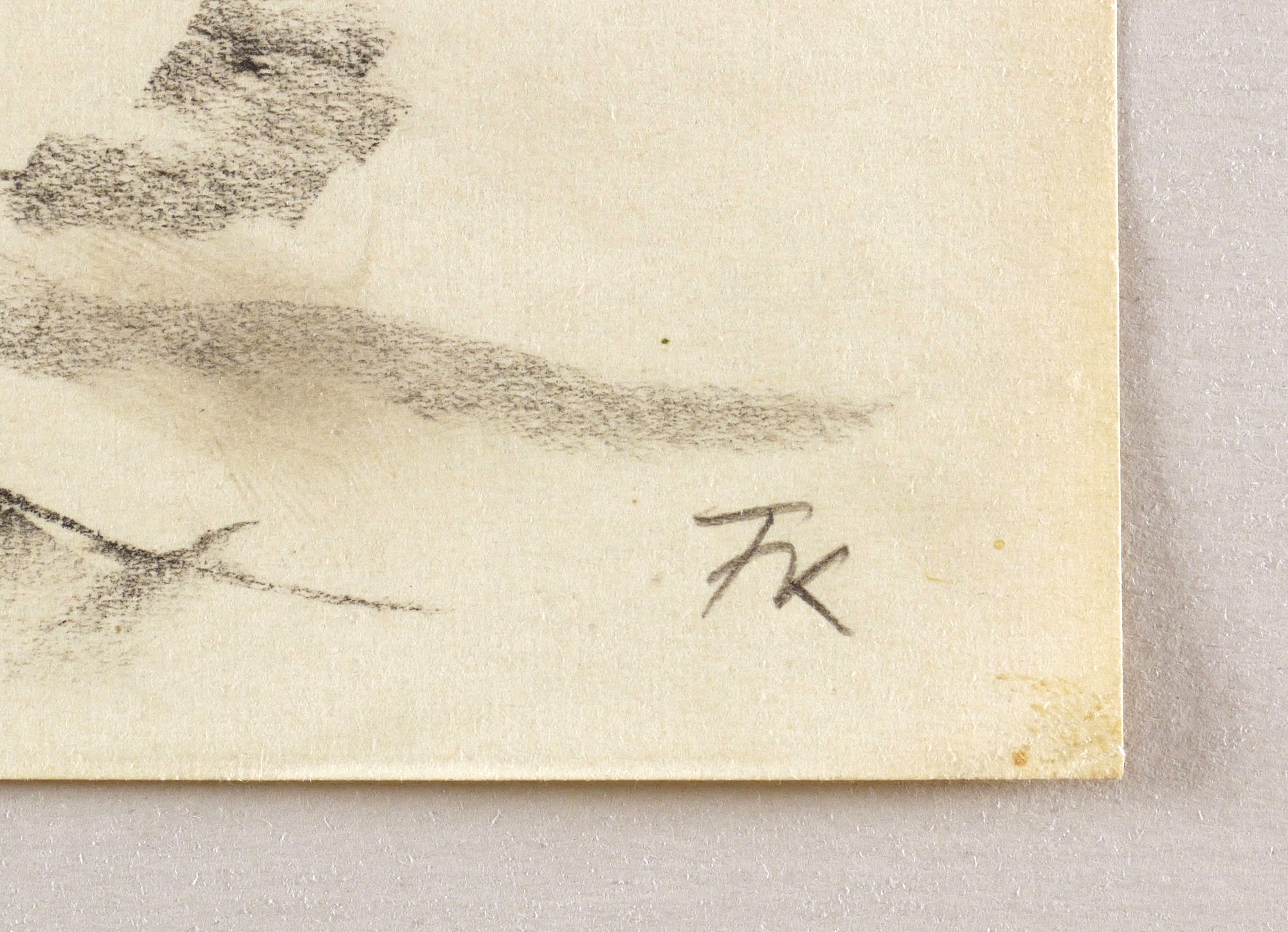 Links unten in Bleistift monogrammiert: ″FK″. – Blatt aus einem Skizzenbuch. – Stärker knickspurig. Mangelhafter bis mäßig guter Zustand.