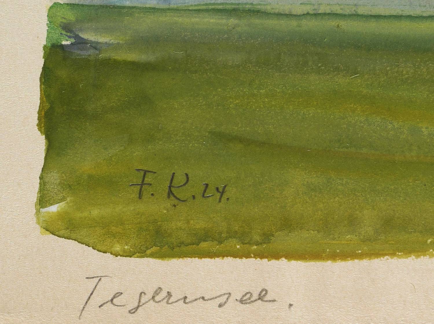 Links unten in Bleistift signiert und datiert: ″F.K. 24.″ Darunter bezeichnet: ″Tegernsee.″ – Provenienz: Nachlass der zweiten Ehefrau Martha (Marthel) Müller-Kempe, Dresden. – Farbfrisch und kontrastreich. Sehr guter Zustand.