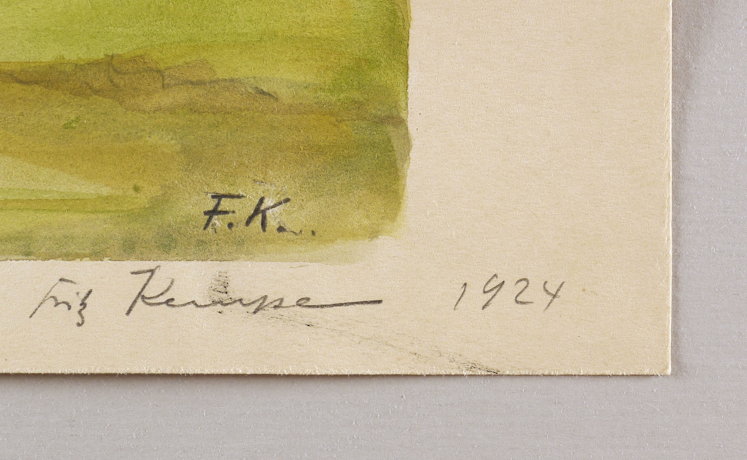 Links unten in Bleistift signiert: ″F.K.″ Darunter nochmals mit signiert und datiert: ″Fritz Kempe 1924″. – Provenienz: Nachlass der zweiten Ehefrau Martha (Marthel) Müller-Kempe, Dresden. – Sehr guter Zustand.