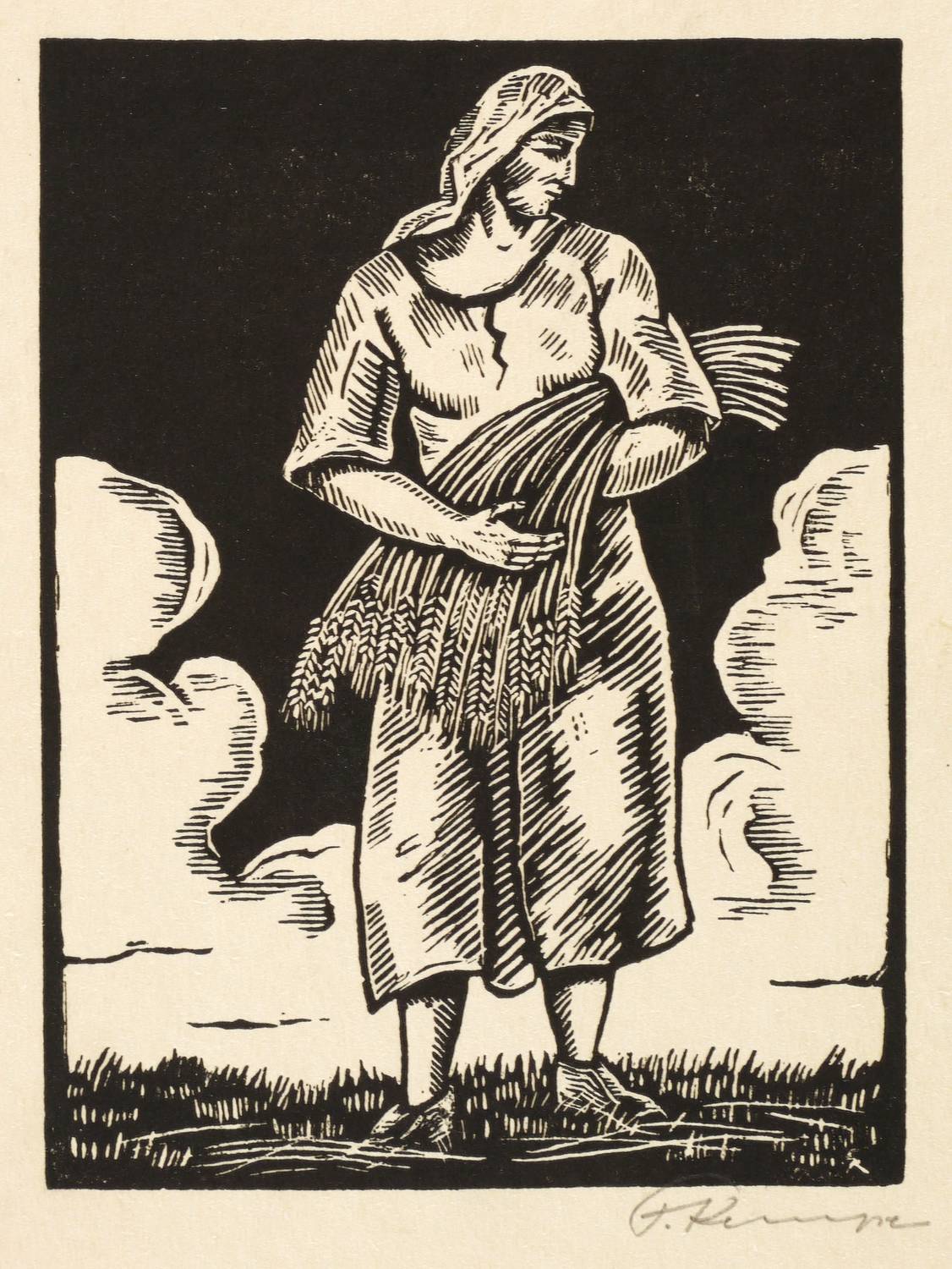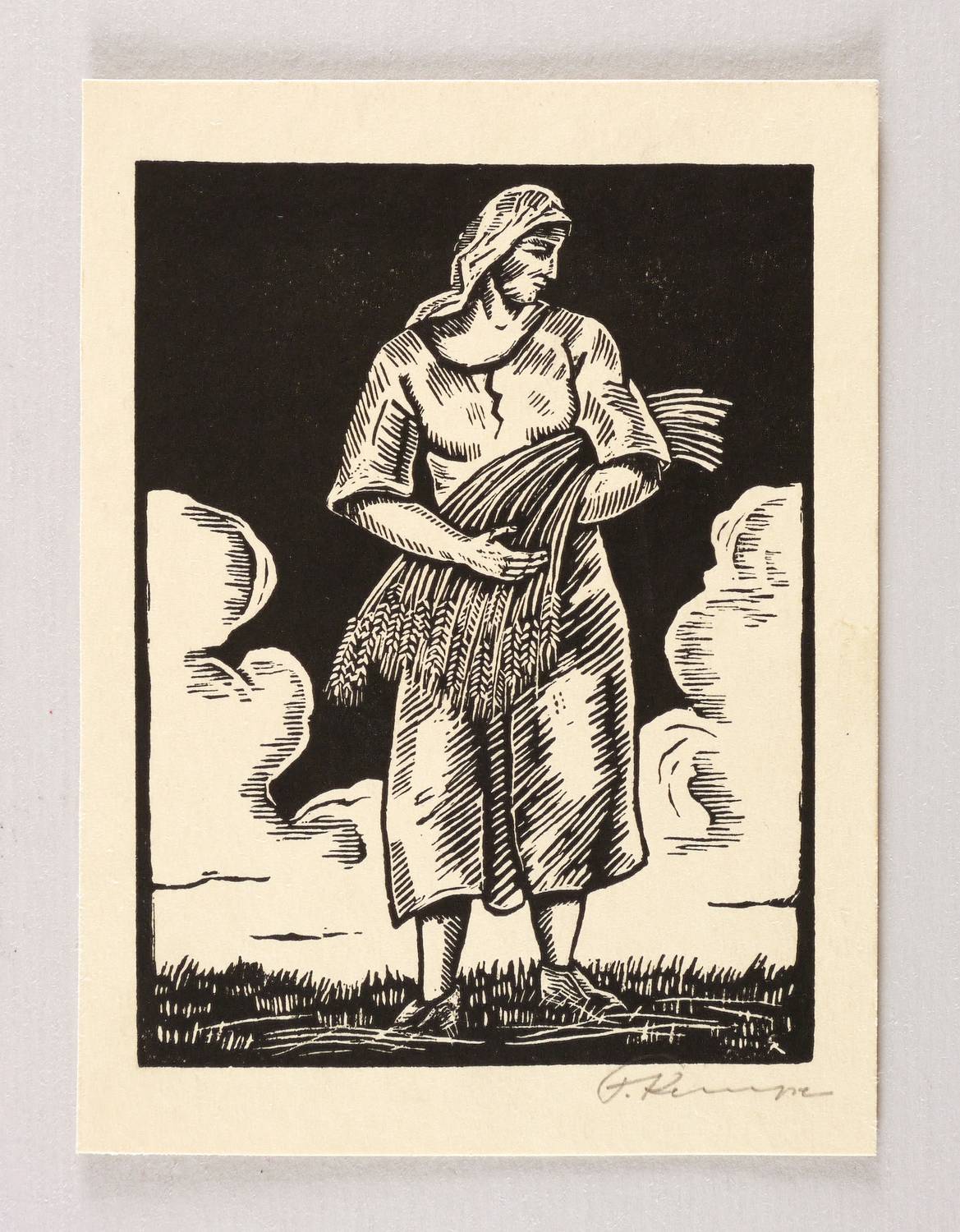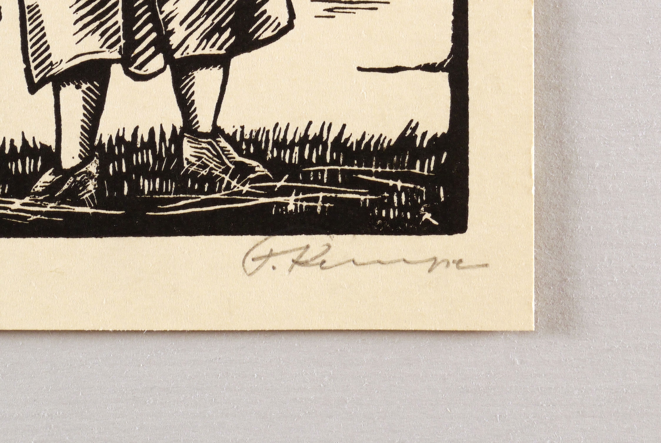 1930-1935. Holzschnitt, in Schwarz, auf gelbem Karton. – Originale Künstlergrafik, von Fritz Kempe. – 12,2 x 9,1 cm (Darstellung / Druckstock), 15 x 11 cm (Blatt).
