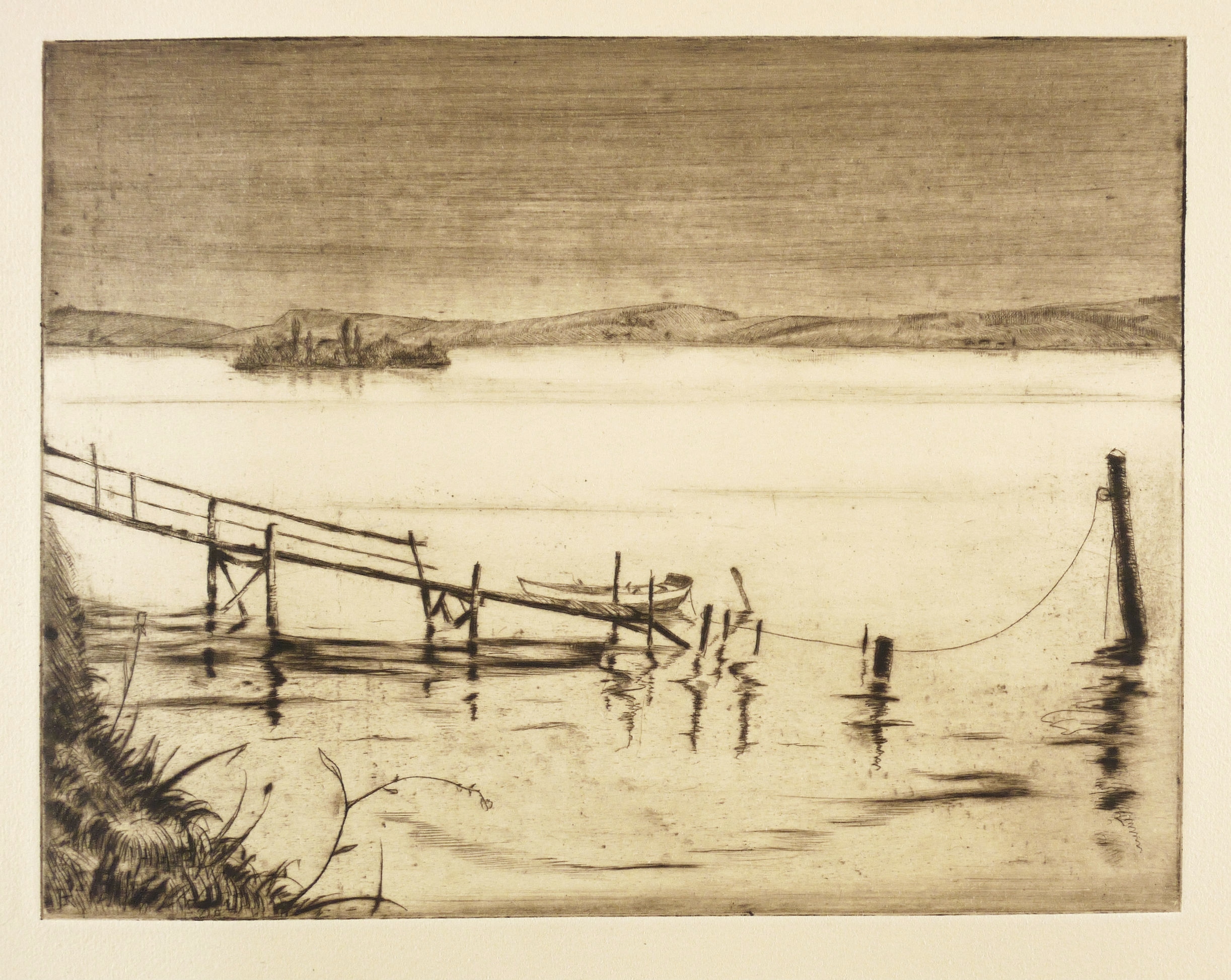 Nicht handsigniert. In der Platte links unten monogrammiert: ″FK″. Verso von fremder Hand bezeichnet: ″Fritz Kempe - Am Bodensee - Orig. Rad.″ – Tadellos erhalten. Sehr guter Zustand.