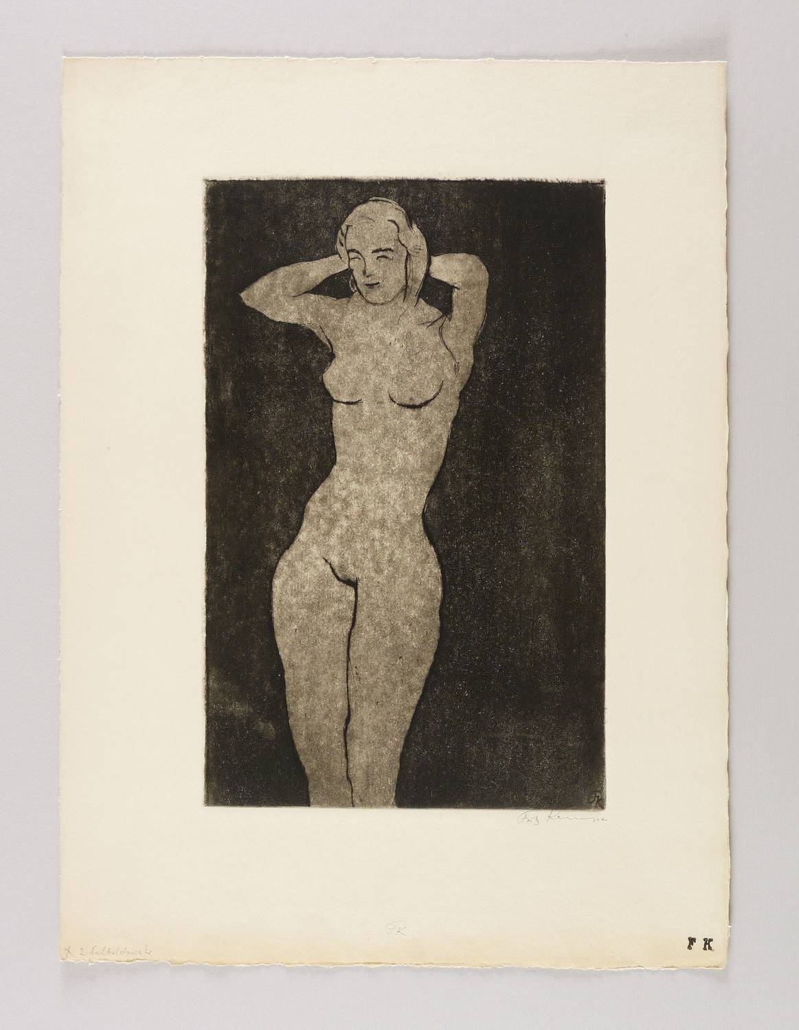 Rechts unten in Bleistift signiert: ″Fritz Kempe″. Weiter bezeichnet: ″2 Selbstdruck / FK″. Dazu Monogrammstempel des Künstlers. In der Platte rechts unten nochmals monogrammiert. – Guter Zustand.
