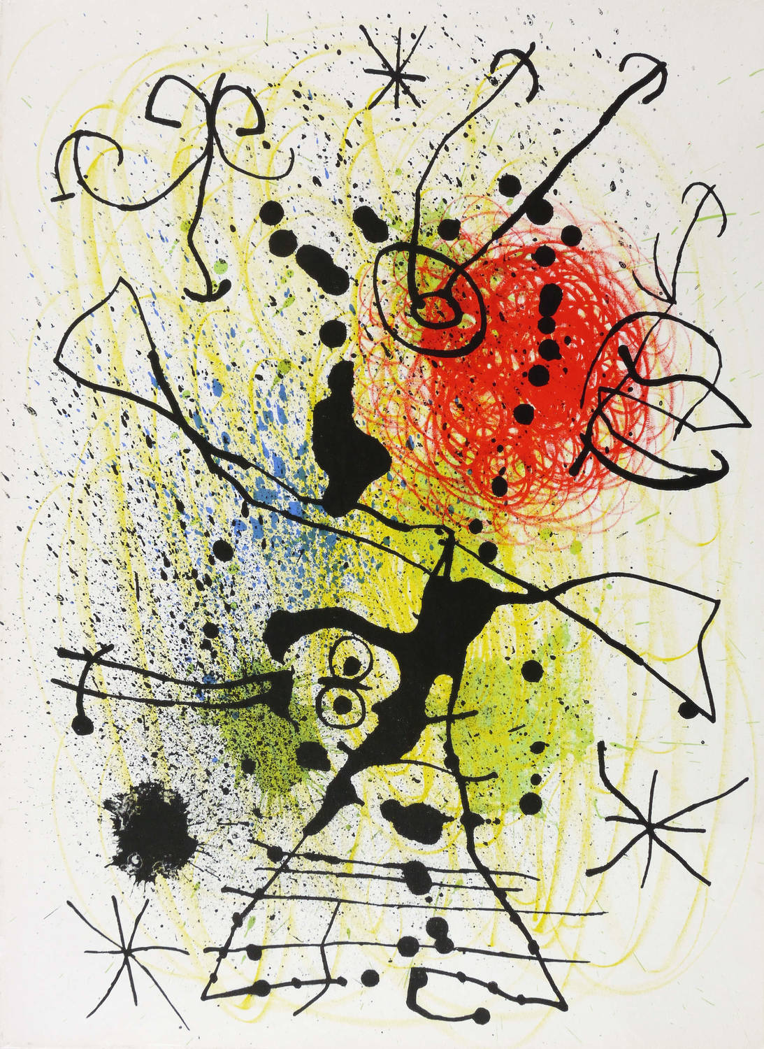 1965. Farblithografie / Pinsellithografie, in 5 Farben, auf glattem weißem Velinkarton. – Originale Künstlergrafik, von Joan Miro. – 38,0 x 27,6 cm (Darstellung / Blatt).