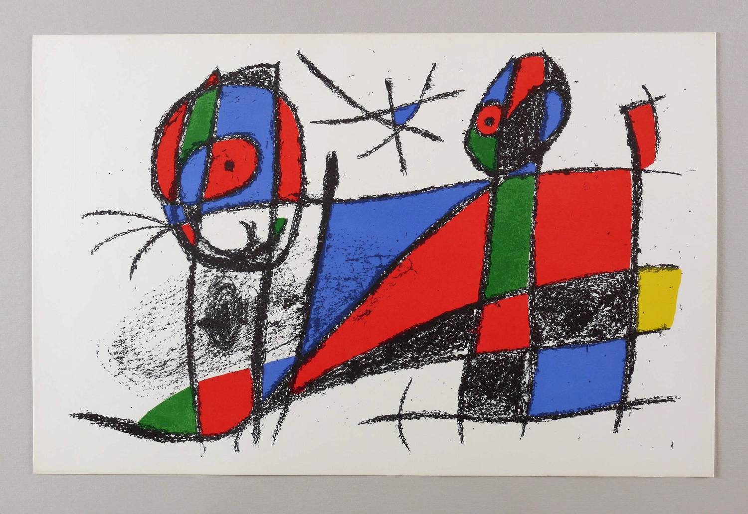 1975. Farblithografie / Pinsellithografie, in 5 Farben, auf weißem Velinkarton. – Originale Künstlergrafik, von Joan Miro. – 31,4 x 47,1 cm (Darstellung / Druckbild), 35 x 53 cm (Blatt).