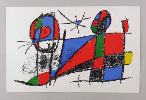 Cramer 198. Maeght 1042. – Verso typografisch bezeichnet: ″JOAN MIRÓ / Litografia originale non firmata VI / Graphis Arte, Livorno / Toninelli Arte Moderna, Milano″. Dazu Notationen in Bleistift. – Druck von Mourlot, Paris. Veröffentlicht bei Maeght Editeur, Paris. – Tadellos. Sehr guter Zustand.