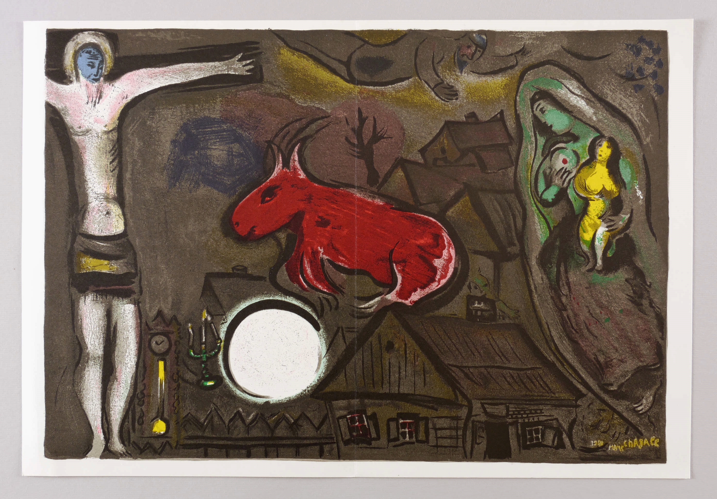 1950. Farblithografie / Pinsellithografie, in 6 Farben, auf glattem weißem Velin. – Originale Künstlergrafik, von Marc Chagall. – 35,8 x 51,7 cm (Darstellung / Druckbild), 38 x 56 cm (Blatt).