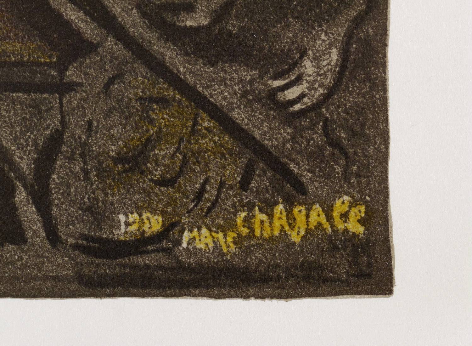 Aus: Derriere le miroir (Paris: Maeght 1950), Bd. 27/28. – Im Stein rechts unten datiert und signiert: ″1950 Marc Chagall″. Verso typografischer Text. – Originale Mittelfalte weitgehend ausgelegen und geglättet. Guter Zustand.