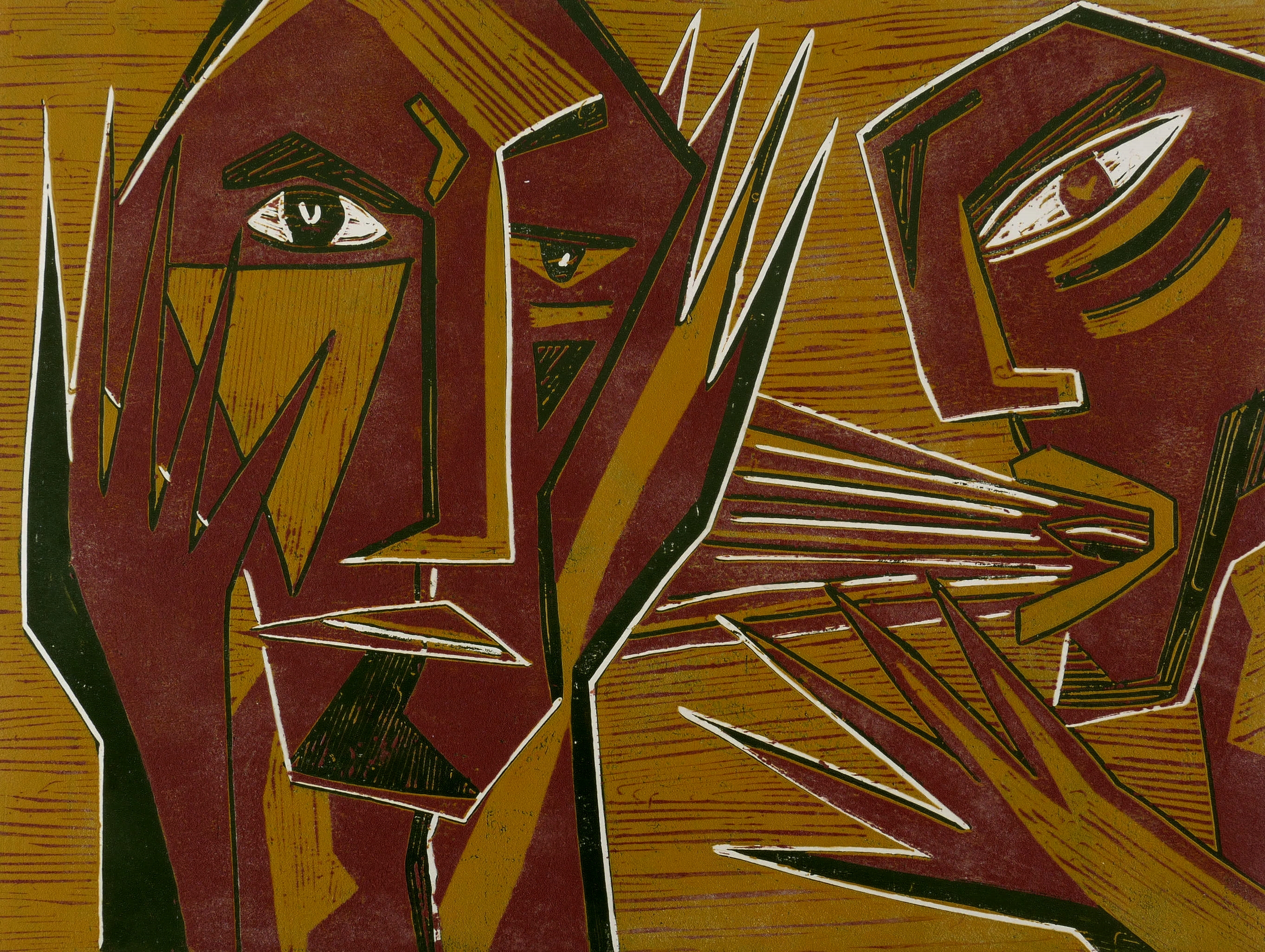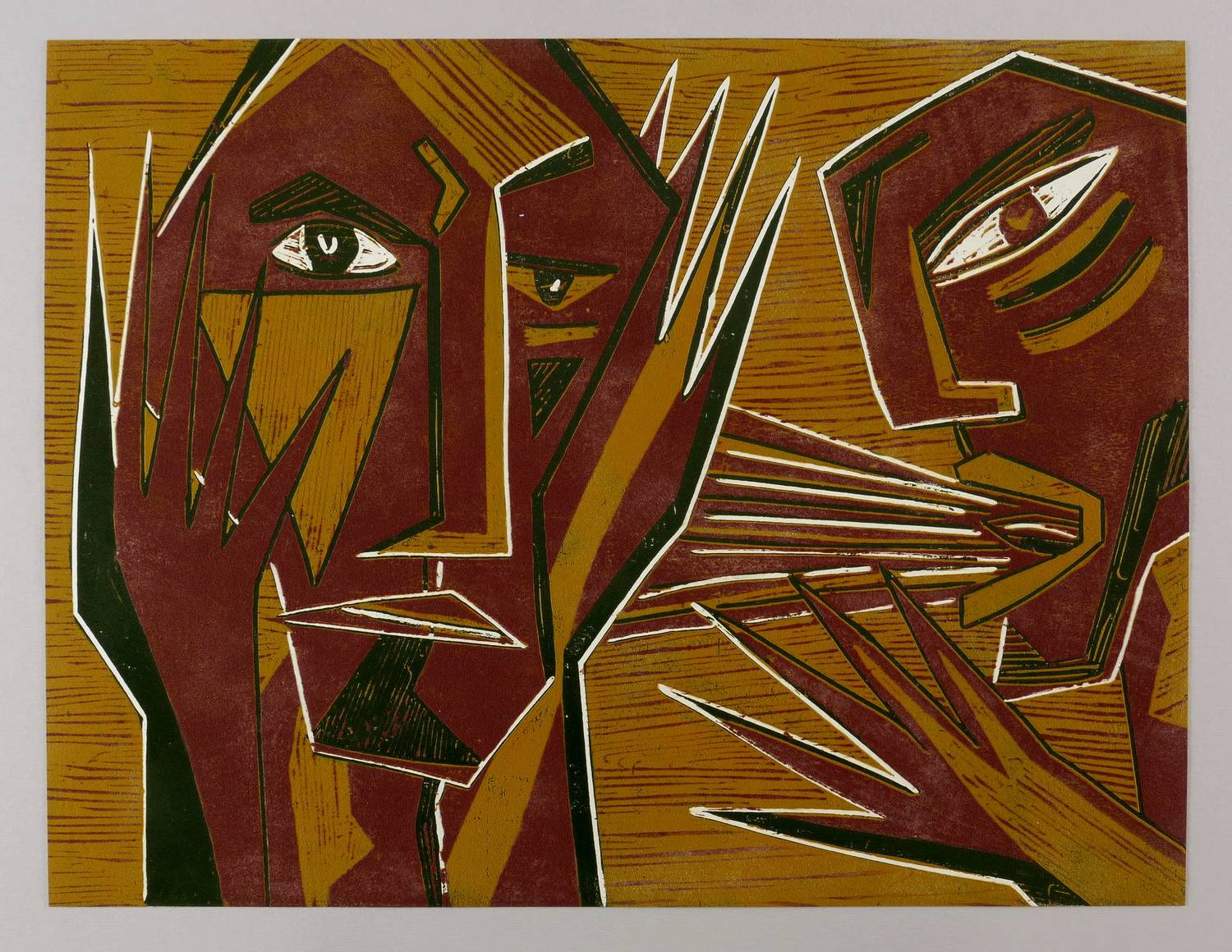 1989. Farbholzschnitt, in Hellbraun, Rotbraun & Schwarz, auf gehämmertem Velin. – Originale Künstlergrafik, von Klaus Süß. – Auflage Exemplar Nr. 5/15. – 49,2 x 64,4 cm (Darstellung / Blatt).