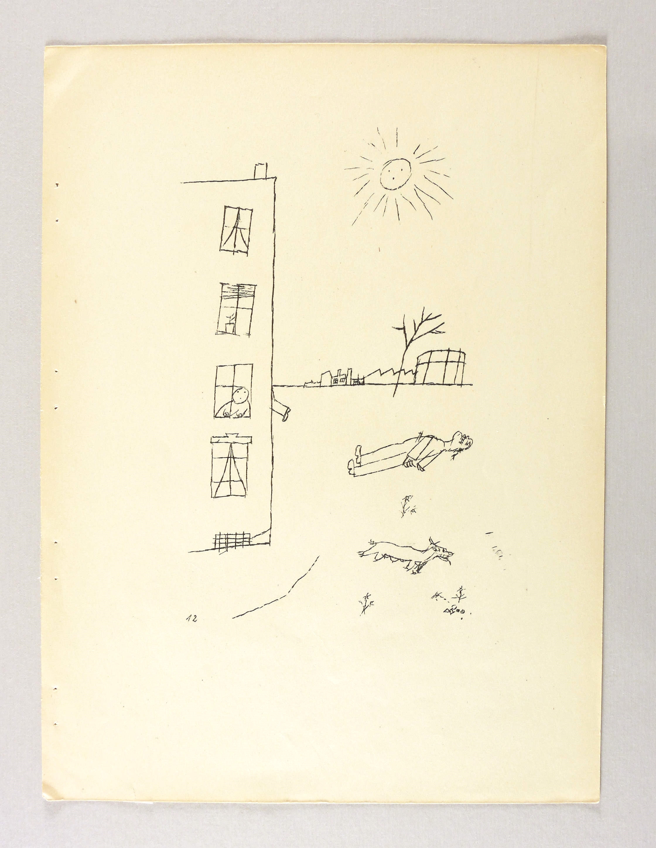 1916/1923. Lithografie / Fotolithografie, in Schwarz, auf gelbem Maschinenpapier. – Originale Künstlergrafik, von George Grosz. – 22,7 x 14,7 cm (Darstellung / Druckbild), 35 x 26 cm (Blatt).