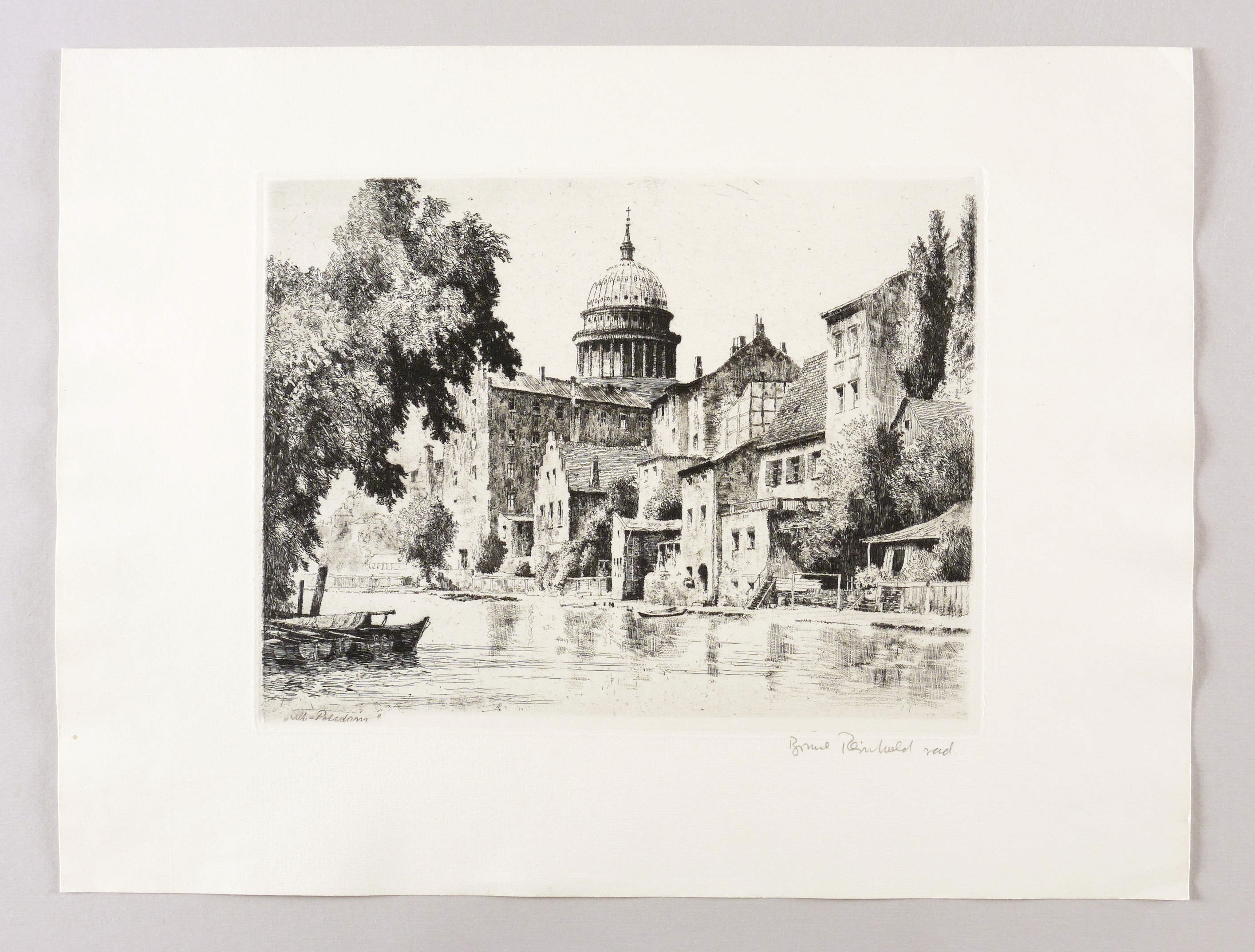 Rechts unten in Bleistift signiert: ″Bruno Reinhold rad.″ In der Platte links unten bezeichnet: ″Alt-Potsdam″. – Später Abzug. – Schönes breitrandiges Exemplar. Untere Blattkante mit leichten Bestoßungen. Insgesamt guter Zustand.