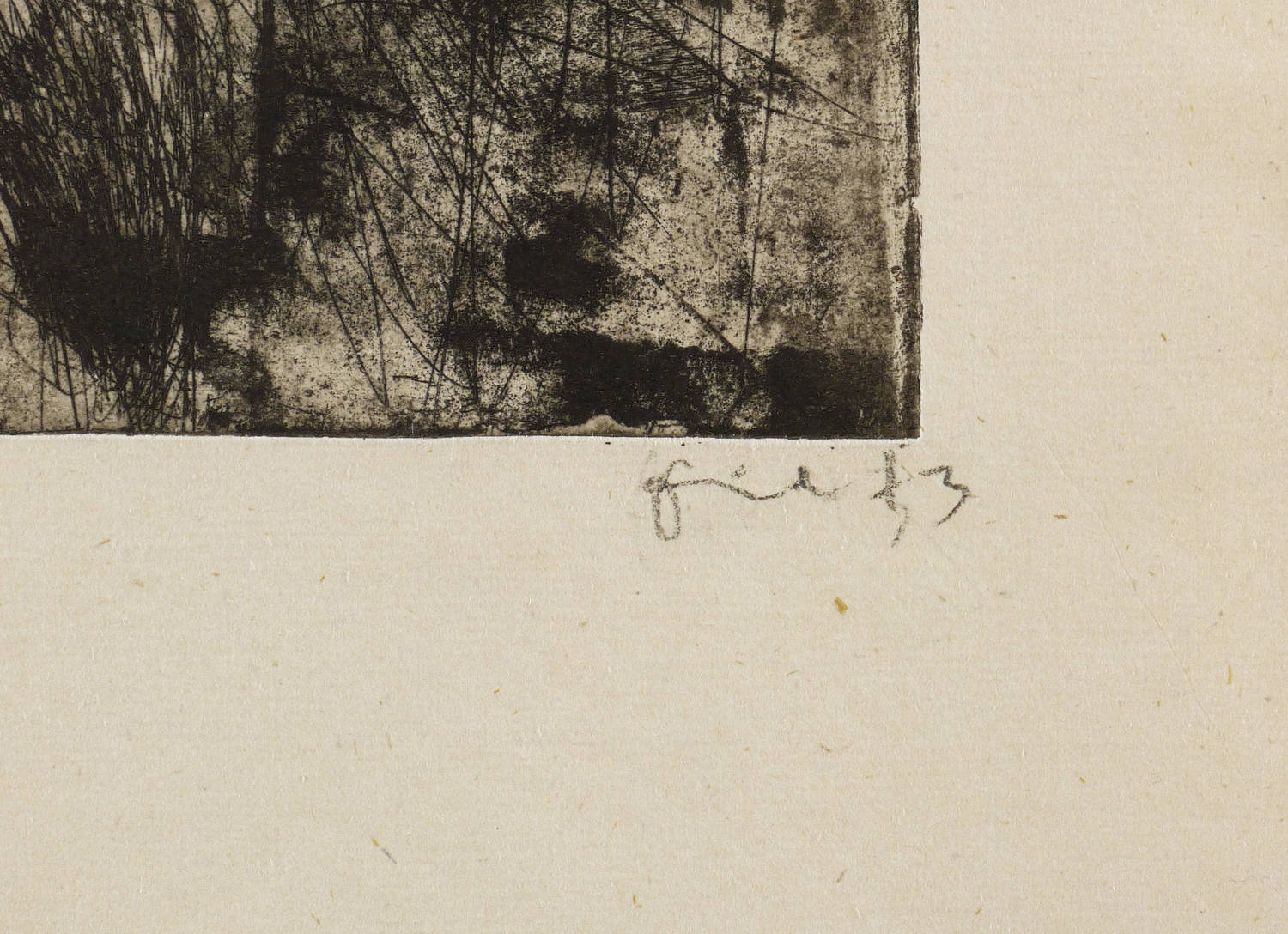 1973. Radierung / Aquatinta & Strichätzung, in Schwarz, auf hartem gelbem Velin. – Von Jürgen Friedrich. – 30,1 x 24,2 cm (Darstellung / Platte), 50 x 33 cm (Blatt).