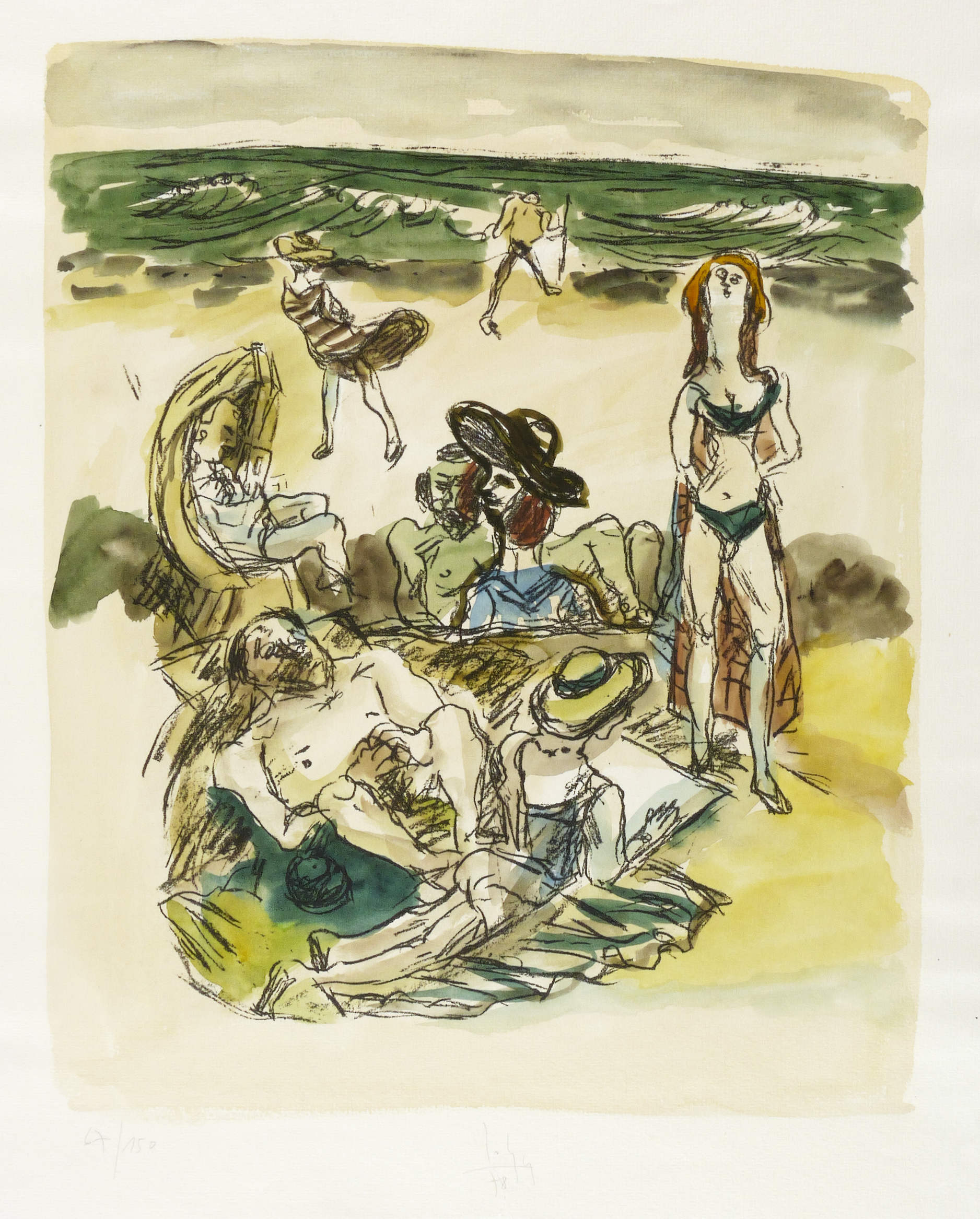 1978. Lithografie / Kreidelithografie, aquarelliert, auf hellem Maschinenbütten. – Originale Künstlergrafik, von Joachim John. – Auflage Exemplar Nr. 67/150. – 42,8 x 35,5 cm (Darstellung), 58 x 46 cm (Blatt).