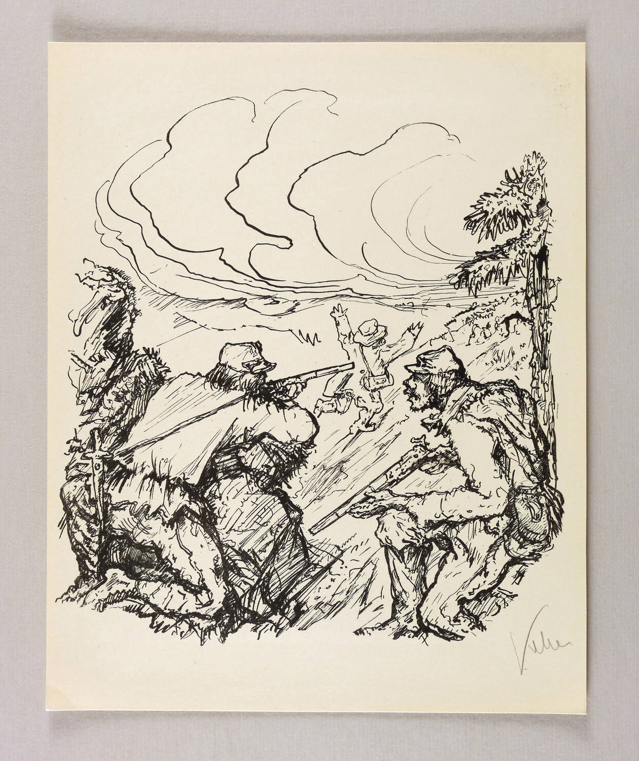 1922. Lithografie / Federlithografie, in Schwarz, auf gelbem Maschinenpapier. – Originale Künstlergrafik, von Alfred Kubin. – 23,2 x 21,2 cm (Darstellung / Druckbild), 28 x 23 cm (Blatt).