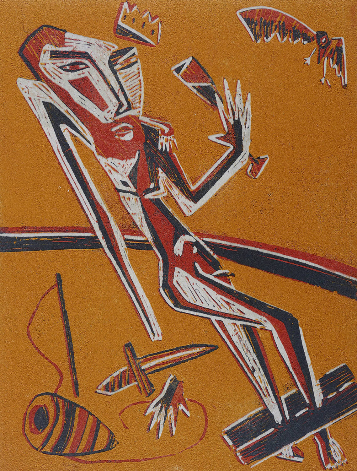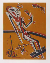 1989. Farbholzschnitt, in 4 Farben, auf Karton. – Von Klaus Süß. – Auflage Exemplar Nr. 21/25. – 40,8 x 30,9 cm (Darstellung / Blatt).