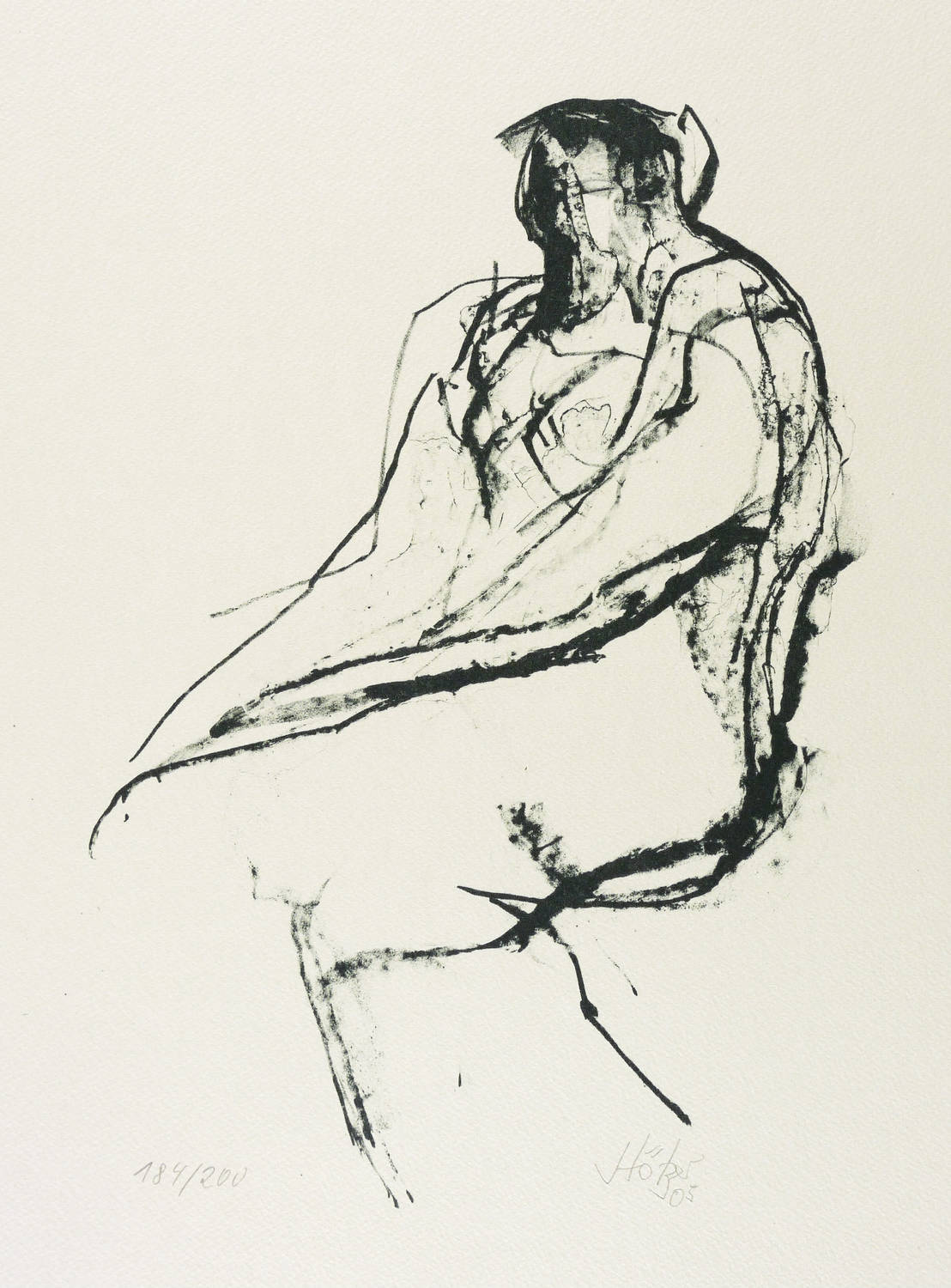 2005. Farbzinkografie / Kreide- & Pinselzinkografie, in Blauschwarz, auf festem hellgelbem Karton. – Originale Künstlergrafik, von Werner Stötzer. – Auflage Exemplar Nr. 184/200. – 32,2 x 22,7 cm (Darstellung / Druckbild), 45 x 35 cm (Blatt).