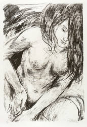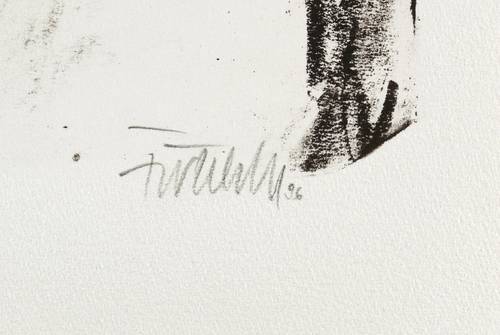 1996. Lithografie / Kreidelithografie, in Schwarz, auf schwerem hellchamois Hahnemühle-Bütten. – Originale Künstlergrafik, von Fritz Fröhlich. – 48,0 x 32,6 cm (Darstellung / Druckbild), 54 x 40 cm (Blatt).