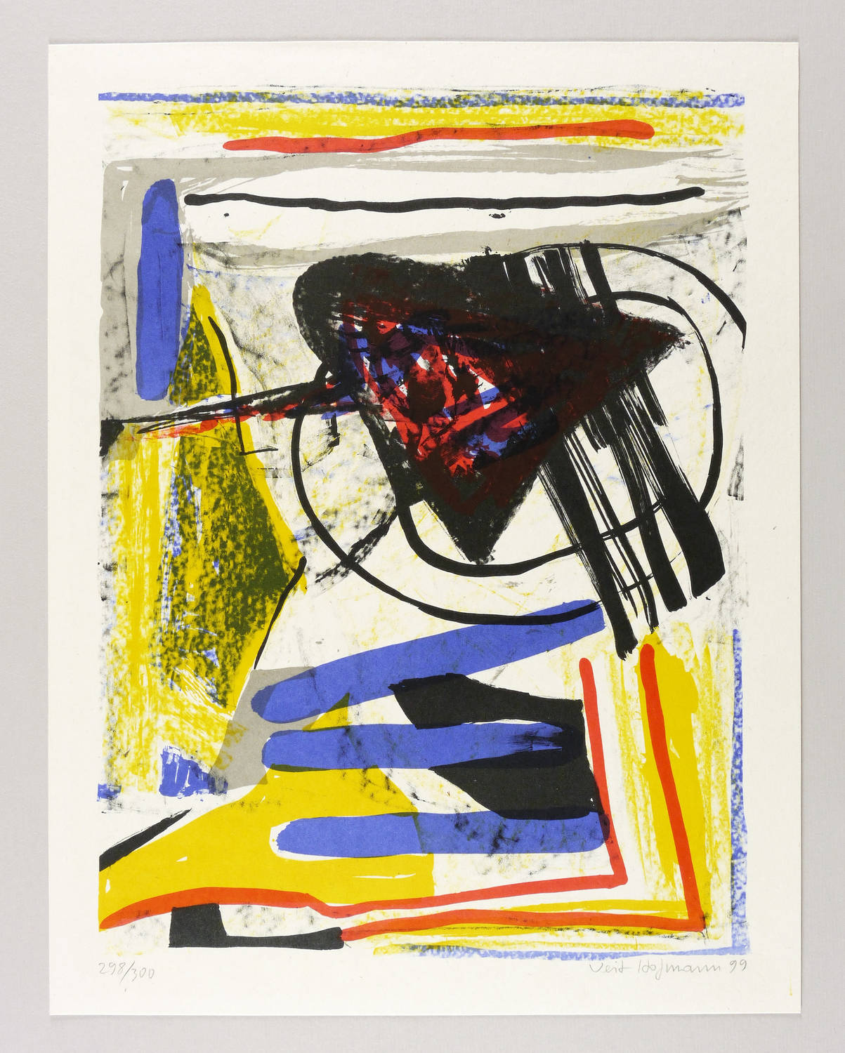 1999. Farbsiebdruck / Farbserigrafie, in 5 Farben, auf hellem Karton. – Originale Künstlergrafik, von Veit Hofmann. – Auflage Exemplar Nr. 298/300. – 39,9 x 29,7 cm (Darstellung), 45 x 35 cm (Blatt).