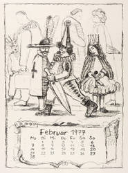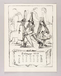Rechts unten in Bleistift signiert. Im Stein am rechten Rand nochmals signiert und datiert: ″V. Henze 76″. – Originalgrafisches Kalenderblatt. – Tadellos. Sehr guter Zustand.