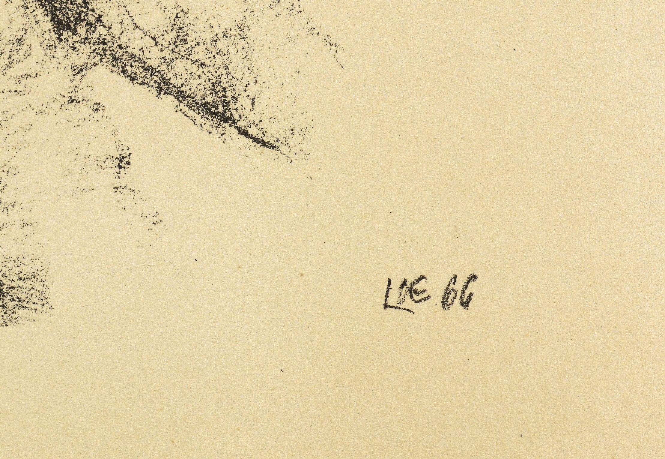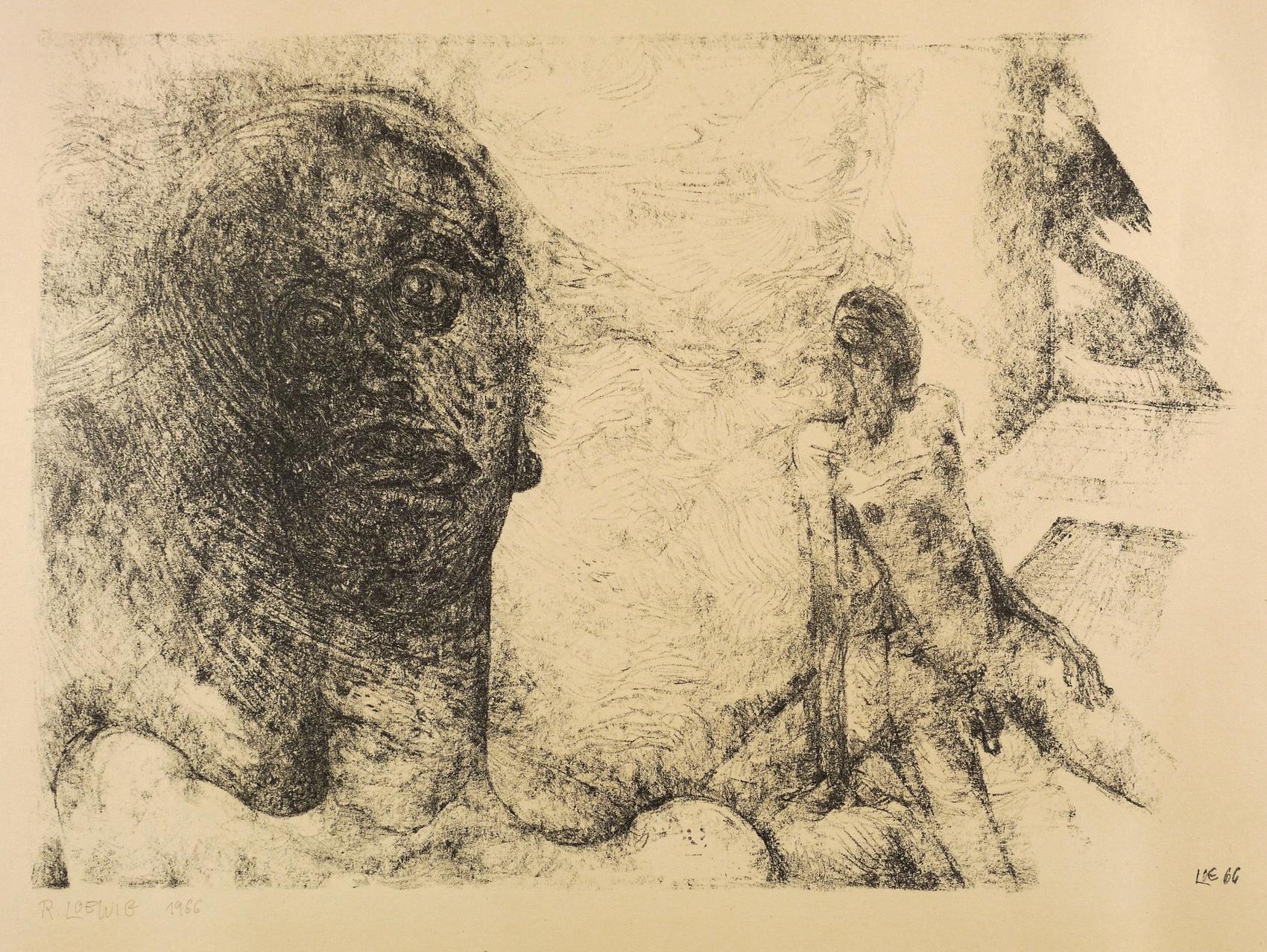 Links unten in Bleistift signiert und datiert: ″R. LOEWIG 1966″. Im Stein rechts unten Signet und Jahr: ″LOE 66″. Verso weiter bezeichnet. – Gut erhalten. Rückseite etwas angeschmutzt. Immerhin mäßig guter Zustand.