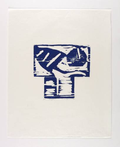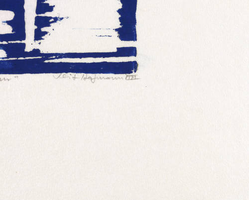2000. Holzschnitt, in Dunkelblau, auf rauem weißlichem Simili-Japan. – Originale Künstlergrafik, von Veit Hofmann. – Künstlerexemplar (e.a.). – 20,8 x 22,0 cm (Darstellung / Druckstock), 50 x 40 cm (Blatt).