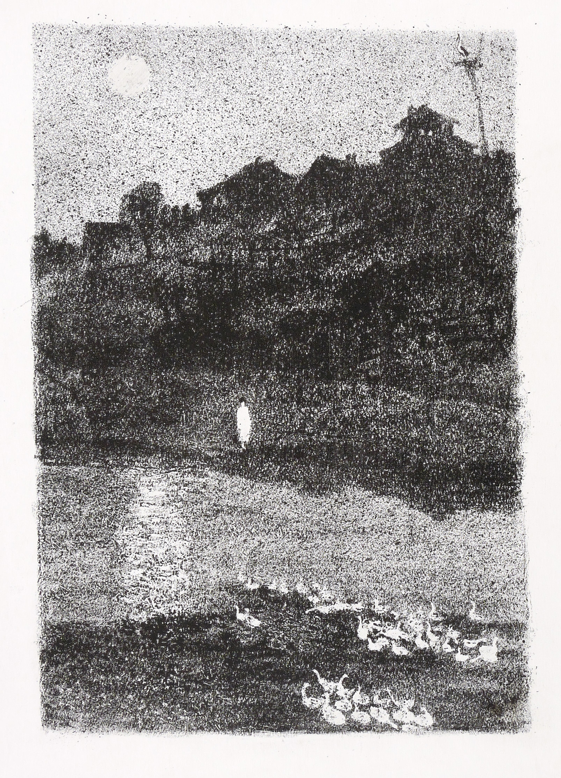1957-1960. Lithografie / Kreidelithografie, partiell geschabt, in Schwarz, auf glattem hellchamois Karton. – Originale Künstlergrafik, von Anatoli Kaplan. – 39,2 x 27,0 cm (Darstellung / Druckbild), 57 x 43 cm (Blatt).