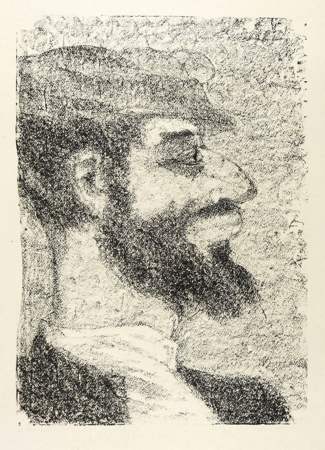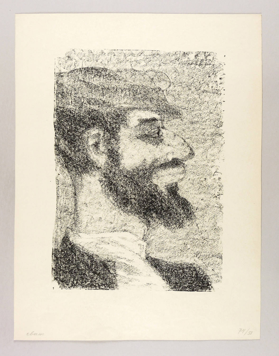 Mayer-Strodt V 47. – Rechts unten in Bleistift kyrillisch signiert und datiert: ″АКаплан 60″. In der linken unteren Blattecke kyrillisch bezeichnet: ″сват″. Rechts nummeriert: ″74/51″. – Signierter und autorisierter Abzug außerhalb der Auflage von 125 Exemplaren zum lithografischen Mappenwerk ″Tewje, der Milchmann″ zu Scholem Alejchem (Moskau: Sovetskij Chudoznik 1961/1966). Druck wohl in Leningrad. - Die etwas spätere Edition als illustriertes Buch (Dresden: Verlag der Kunst 1967) wurde als ″Schönstes Buch der DDR 1967″ ausgezeichnet. - Seltenes Blatt. – Bleistift-Signatur und -Datierung unvollständig gelöscht. Deshalb nur mäßig guter Zustand.