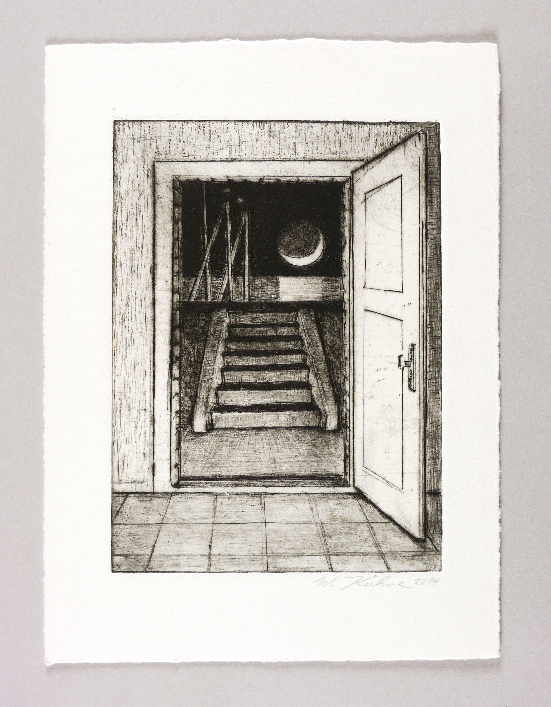 2014. Radierung / Aquatinta & Strichätzung, in Schwarz, auf schwerem hellchamois Velin. – Originale Künstlergrafik, von Wolfgang Kühne. – 19,7 x 14,3 cm (Darstellung / Platte), 27 x 20 cm (Blatt).