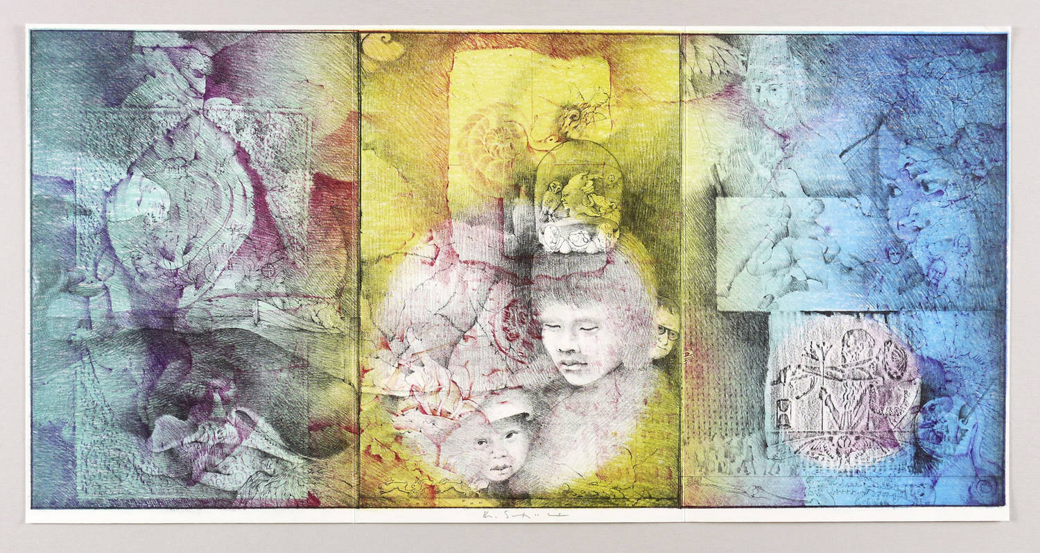 Konrad Schüler (*1938 Rangsdorf bei Berlin, lebt und arbeitet in Kükels bei Segeberg). Deutscher Maler und Grafiker. Bildkünstlerischer Unterricht bei Harry Grossmann und Ottilie Ehlers-Kollwitz in Berlin-Lichtenrade. Lehre zum Farbenlithograph in Berlin Kreuzberg. Ausbildung an der Meisterschule für Graphik-Druck Werbung Berlin. Studium an der Hochschule für bildende Künste Berlin bei Kögler und Hartmann. Ab 1964 künstlerischer Leiter der Druckwerkstatt an der Akademie für Graphik-Druck und Werbung. Ab 1966 zahlreiche Gruppen- und Einzelausstellungen. 1971-97 Professur und künstlerische Leitung der Druckwerkstatt Flach- und Hochdruck an der Hochschule der Künste Berlin (HdK/UdK). Seit 1973 Vertretung in der Produzentengalerie in Kükels. Mitglied Ausstellungsgemeinschaft Segeberger Künstler (AUGE).