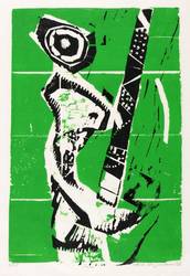 2000. Farbholzschnitt, in Grün & Schwarz, auf hellem Simili-Japan. – Originale Künstlergrafik, von Veit Hofmann. – Auflage Exemplar Nr. 6/15. – 35,2 x 23,5 cm (Darstellung / Druckstock), 45 x 30 cm (Blatt).