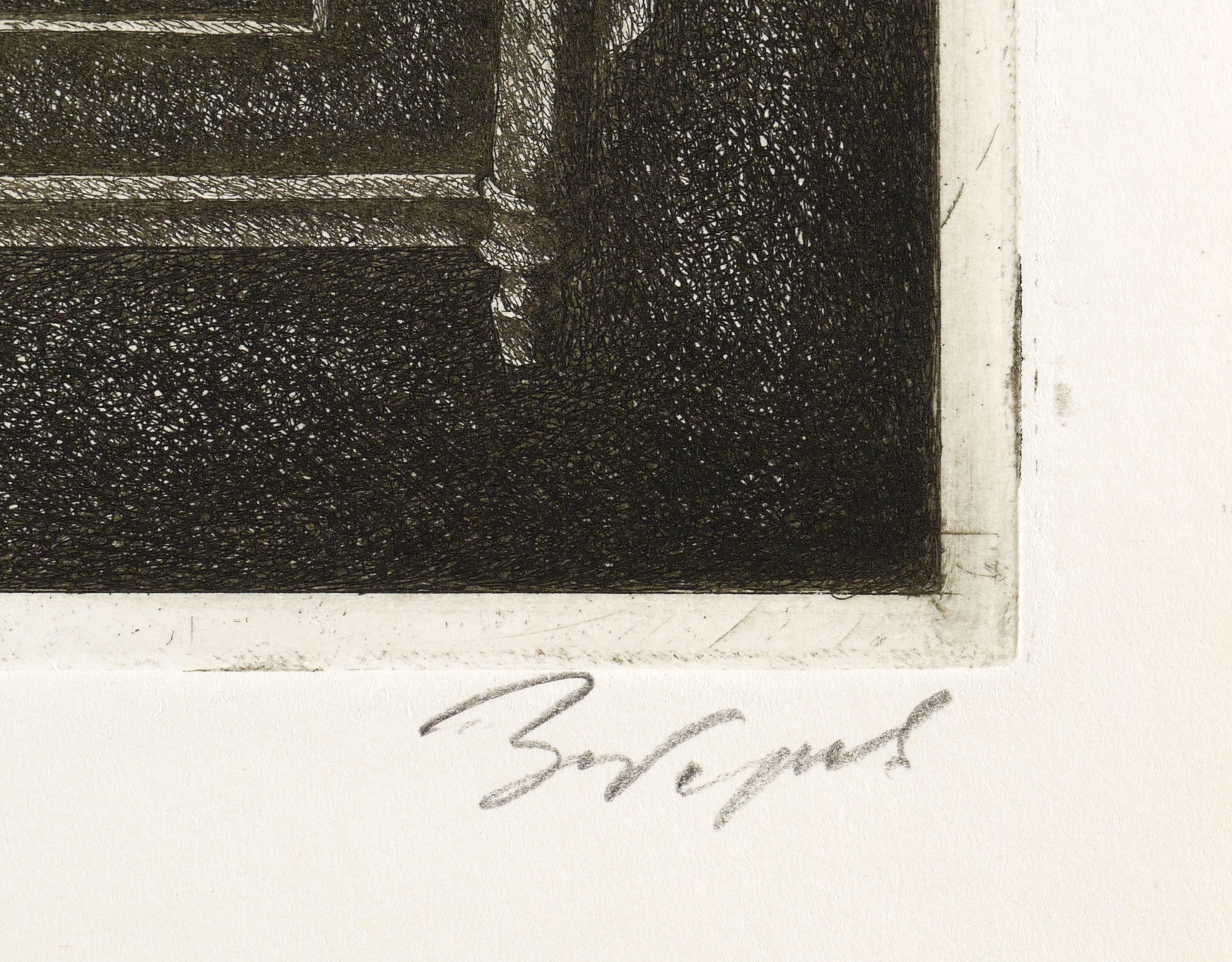 1976. Radierung / Strichätzung & Kaltnadel, in Grünschwarz, auf hartem hellgelbem Velin. – Originale Künstlergrafik, von Boris Zaborov. – Auflage Exemplar Nr. 38/50. – 31,7 x 31,3 cm (Darstellung / Platte), 39 x 36 cm (Blatt).