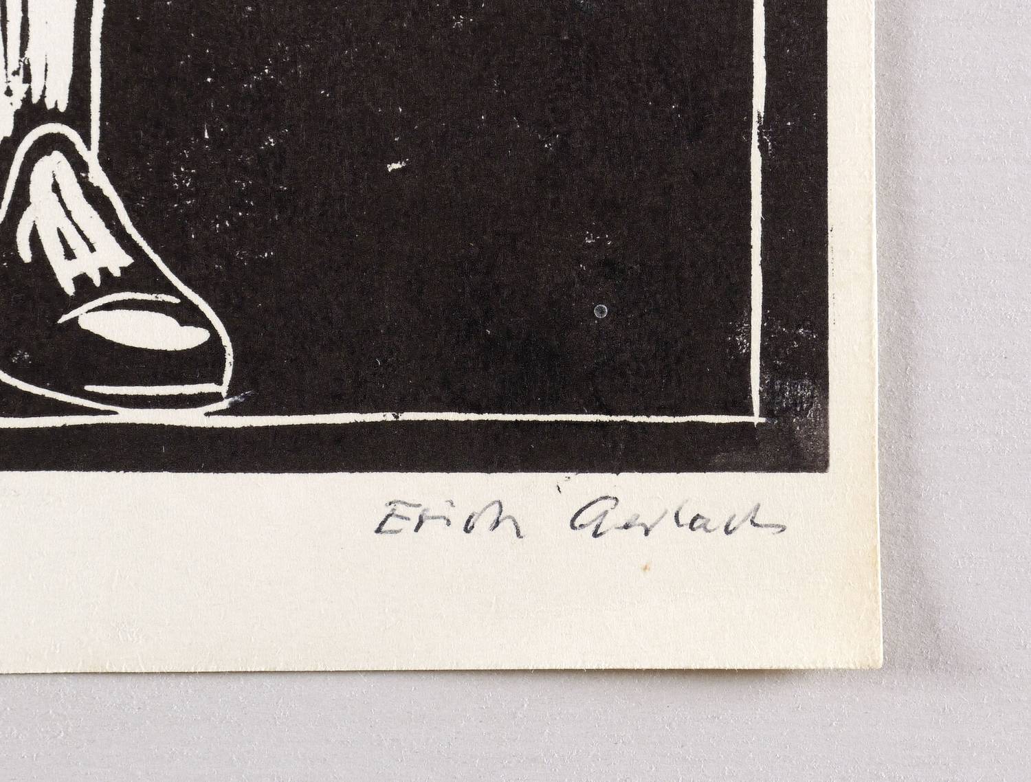 1983. Linolschnitt, in Schwarz, auf hellchamois Maschinenpapier. – Originale Künstlergrafik, von Erich Gerlach. – 39,4 x 20,7 cm (Darstellung / Druckbild), 42,0 x 21,7 cm (Blatt).