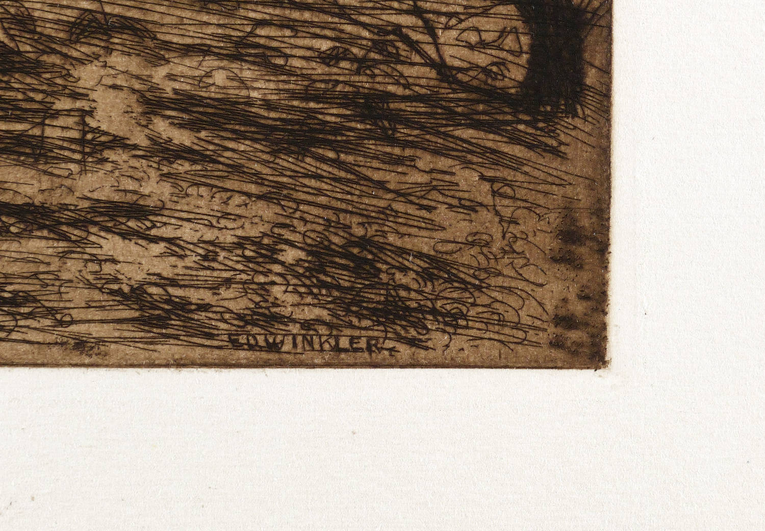 1914. Radierung / Strichätzung, in Schwarzbraun, mit Plattenton, auf Van-Gelder-Zonen-Velin. – Originale Künstlergrafik, von Eduard Winkler. – 18,7 x 24,2 cm (Darstellung / Platte), 25 x 33 cm (Blatt).