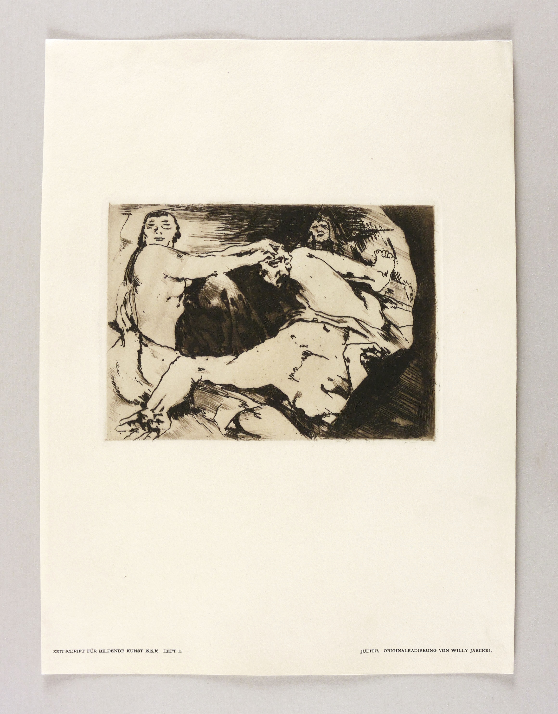 Stilijanov-Nedo 13. – Aus: Zeitschrift für bildende Kunst (Leipzig: E.A. Seemann 1915), Bd. 26. – Nicht handsigniert. Im unteren Rand typografisch bezeichnet: ″JUDITH. ORIGINALRADIERUNG VON WILLY JAECKEL″. – Originalgrafische Beilage der Zeitschrift für Bildende Kunst. – Originalrandiges unbeschnittenes Exemplar. Papier geringfügig gewellt. Sehr guter Zustand.