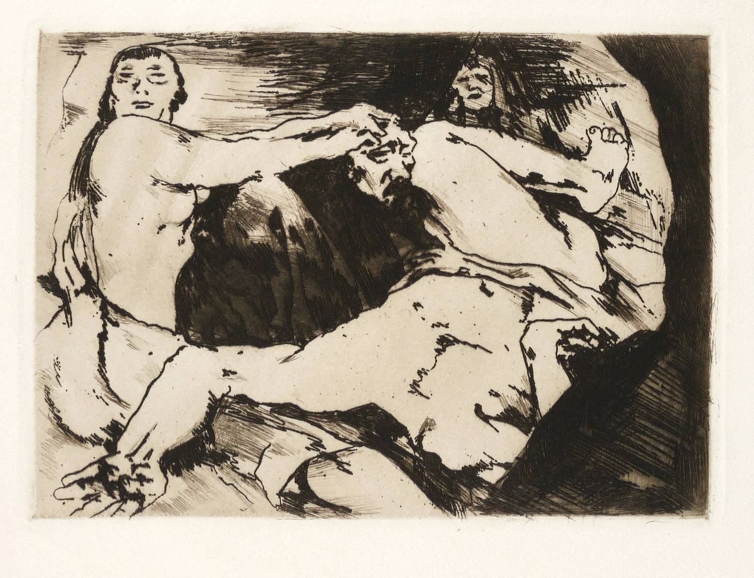1915. Radierung / Strichätzung & Kaltnadel, in Schwarz, auf gelbem Kupferdruckpapier. – Originale Künstlergrafik, von Willy Jaeckel. – 12,5 x 17,6 cm (Darstellung / Platte), 33 x 25 cm (Blatt).