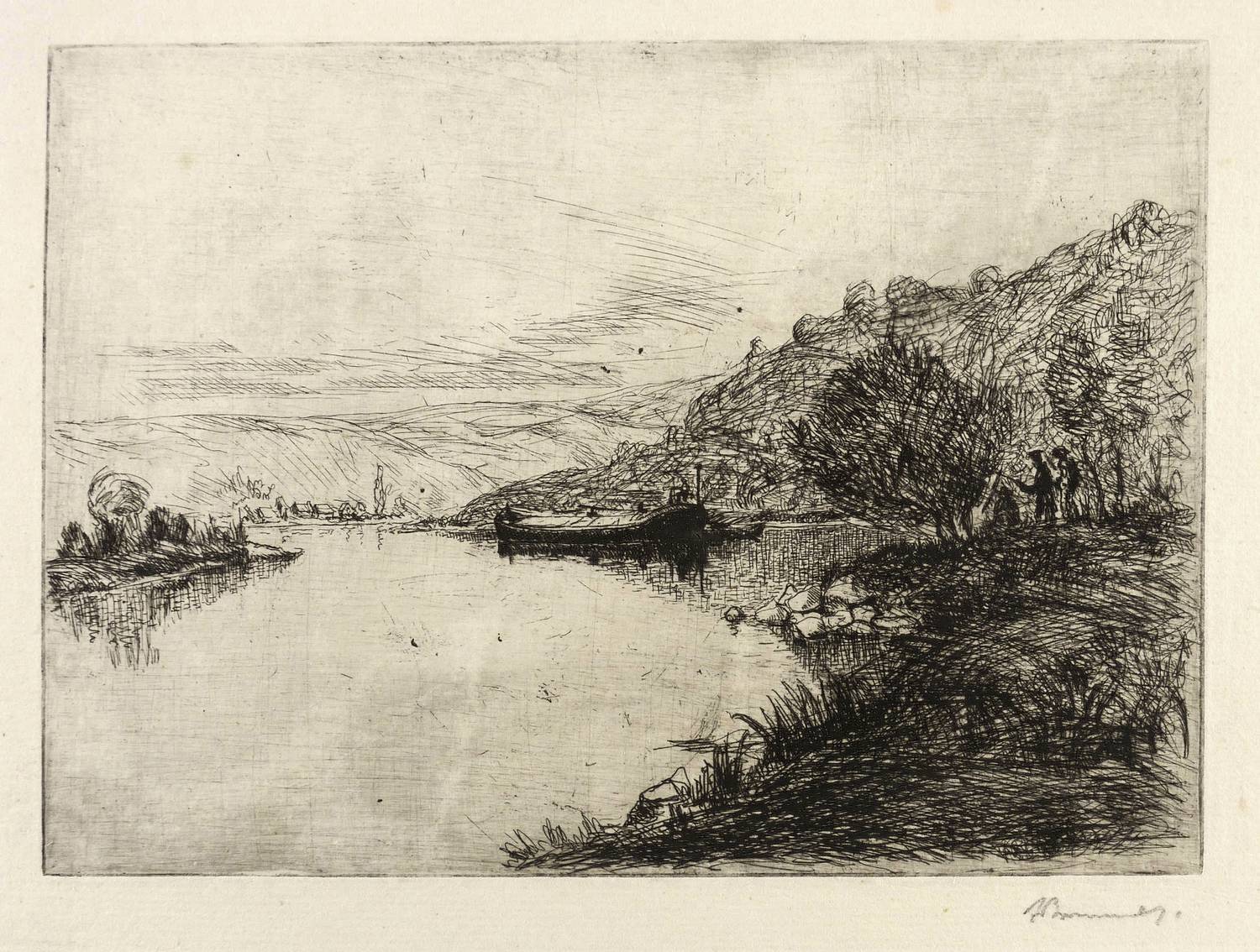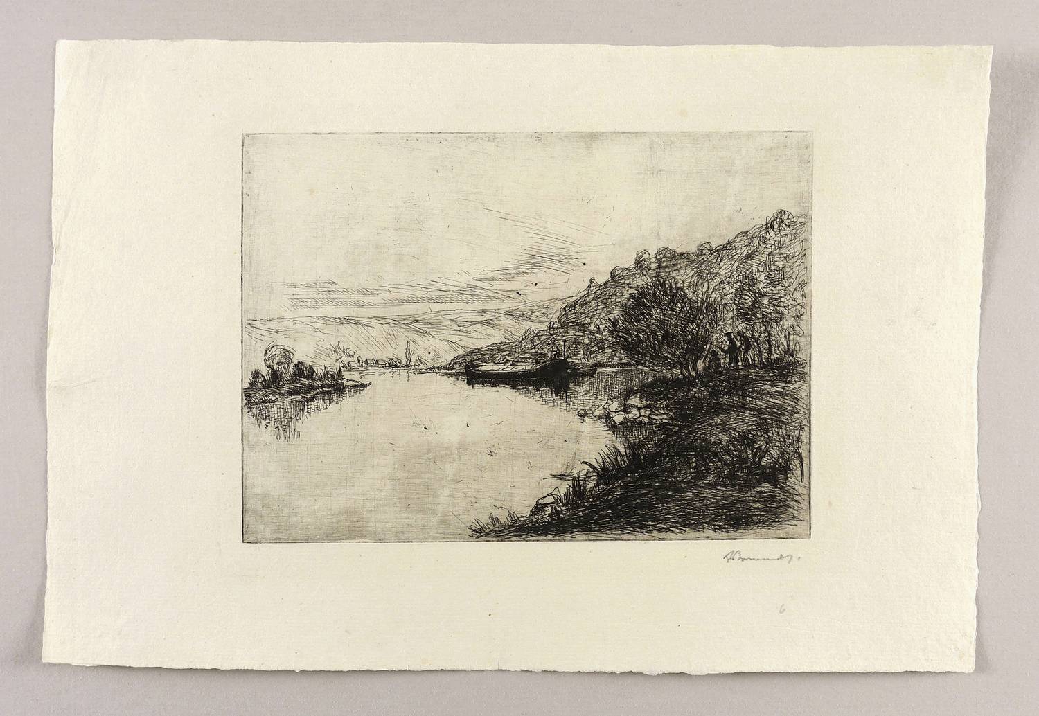Rechts unten in Bleistift signiert: ″ABrunner″. Verso bezeichnet: ″Mainlandschaft (neues Motiv)″. – Schönes breitrandiges Exemplar. Sehr guter Zustand.
