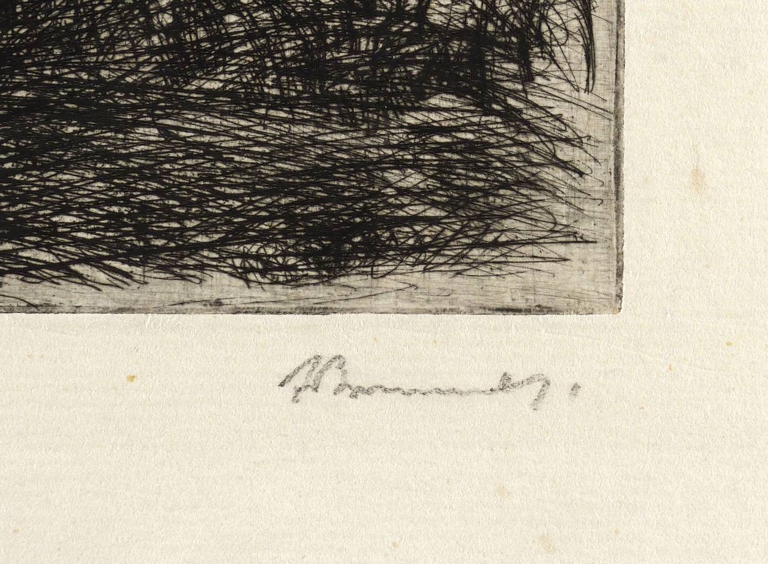 1930-1935. Radierung / Strichätzung, in Schwarz, auf feinem hellgelbem Bütten. – Originale Künstlergrafik, von Adolf Brunner. – 14,8 x 20,6 cm (Darstellung / Platte), 23 x 34 cm (Blatt).